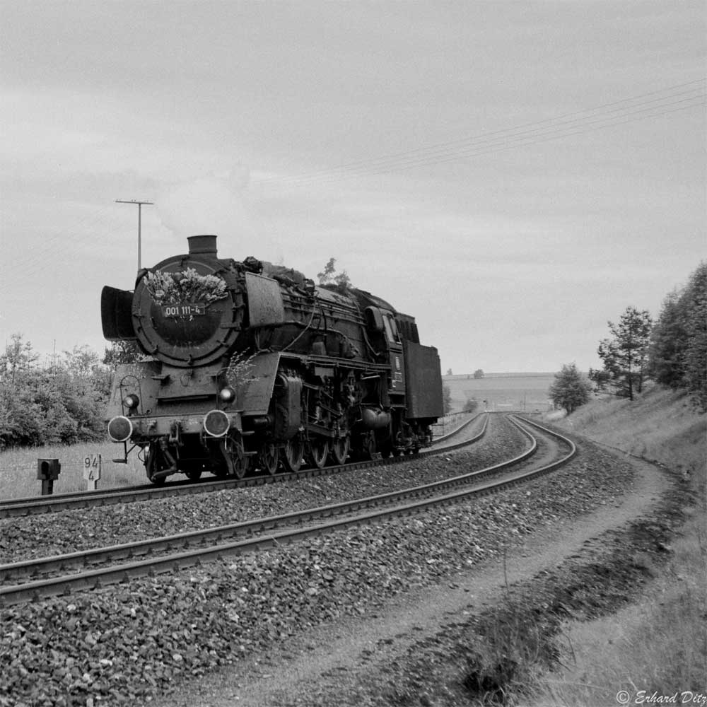 001 111 mit dem E 659, der sich hinter der Lok versteckt