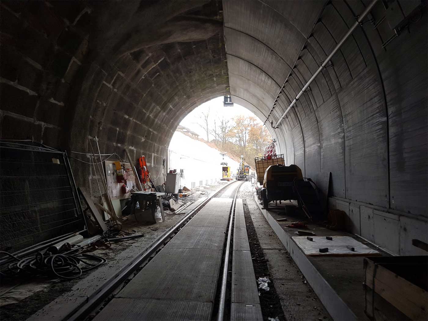 Der Tunnel ersetzt die dortige Hacksbergschleife und verkürzt die Strecke um 3,07 Kilometer, dabei hat er eine Längsneigung von 40 Promille.