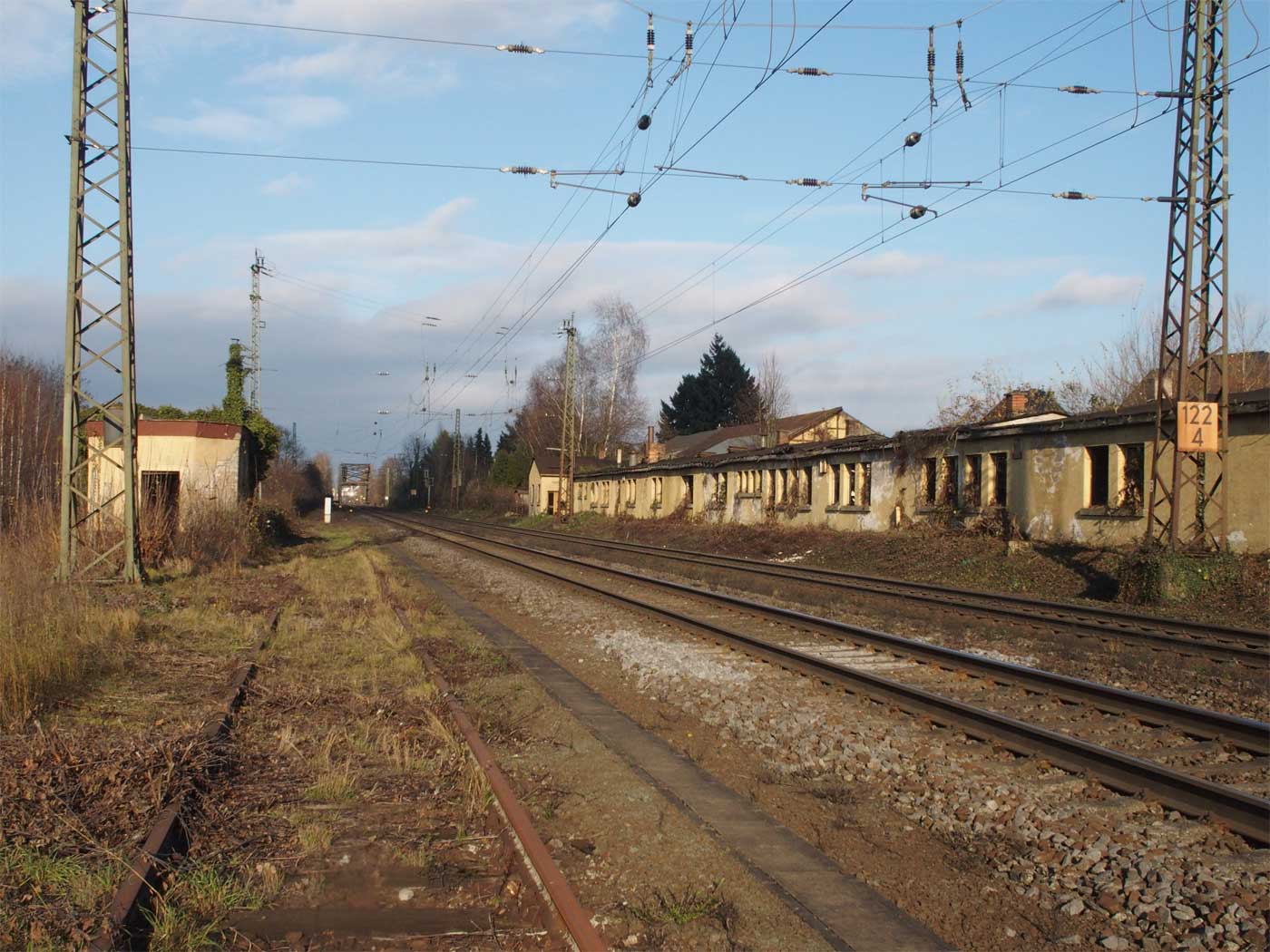 Links die Überreste des ehemaligen Stellwerks X