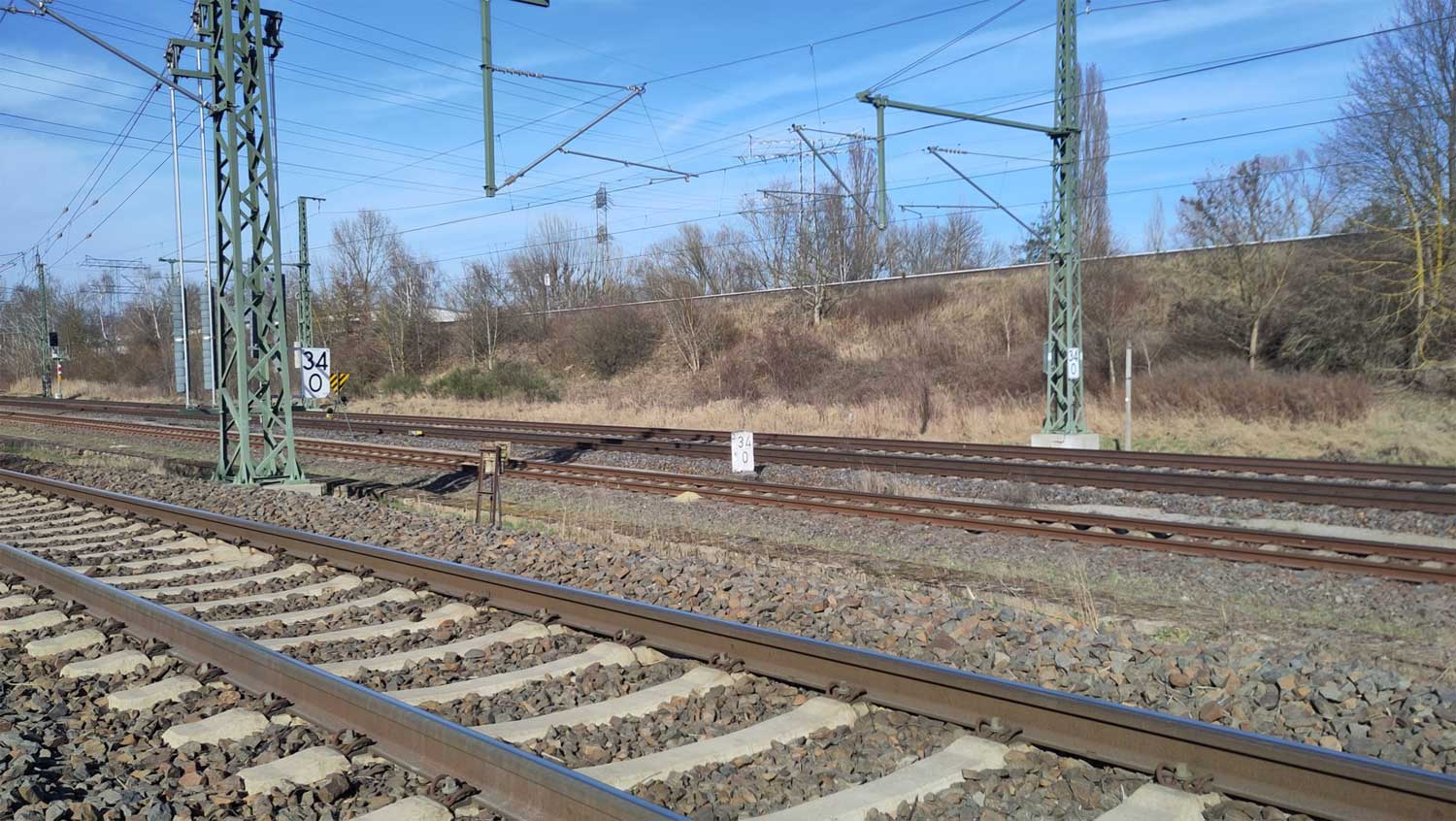 bei km 34,3 (BAR-6080) in Springpfuhl/Biesdorfer Kreuz Nord - Blick in Richtung der Kilometrierung