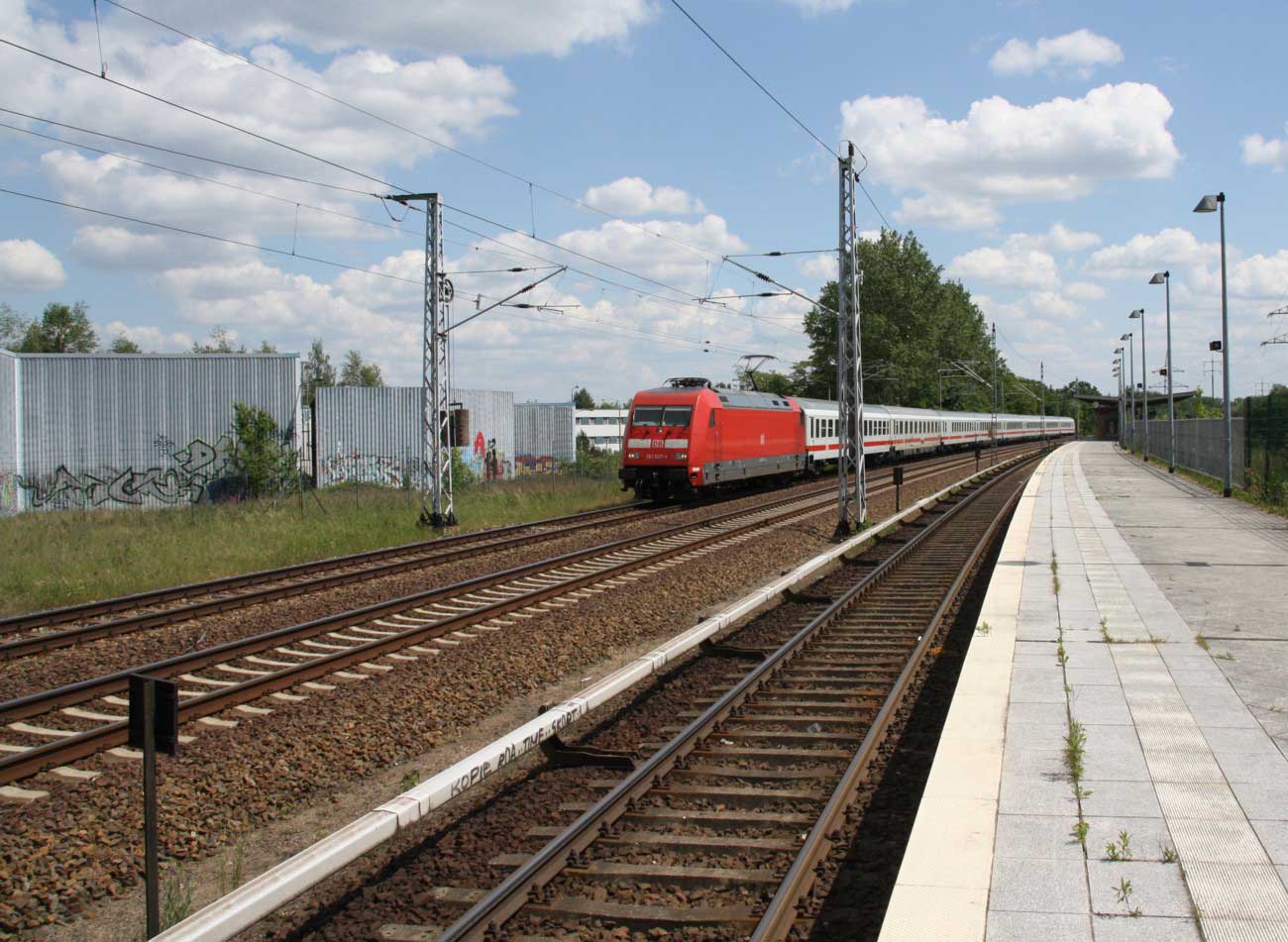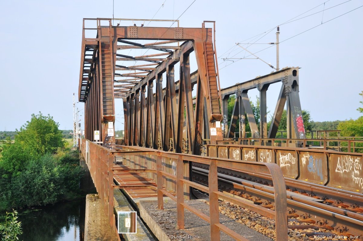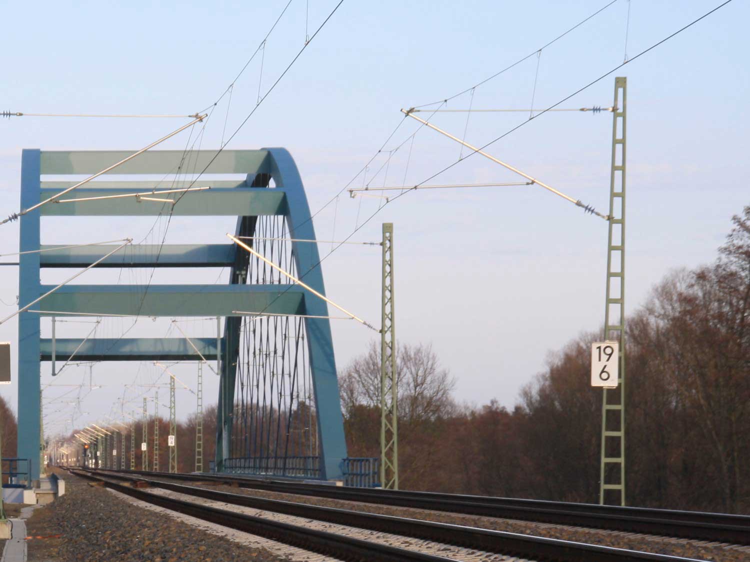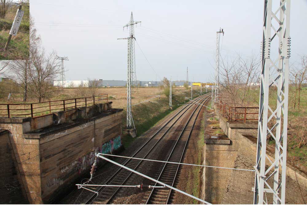 Über die Brücke im Hintergrund führen drei Gleise der Lehrter Bahn (1 Gleis Strecke 6107 und 2 Gleise Strecke 6185)