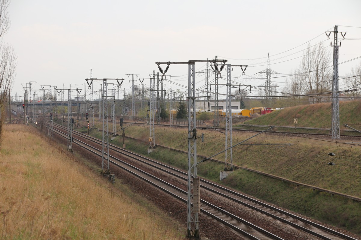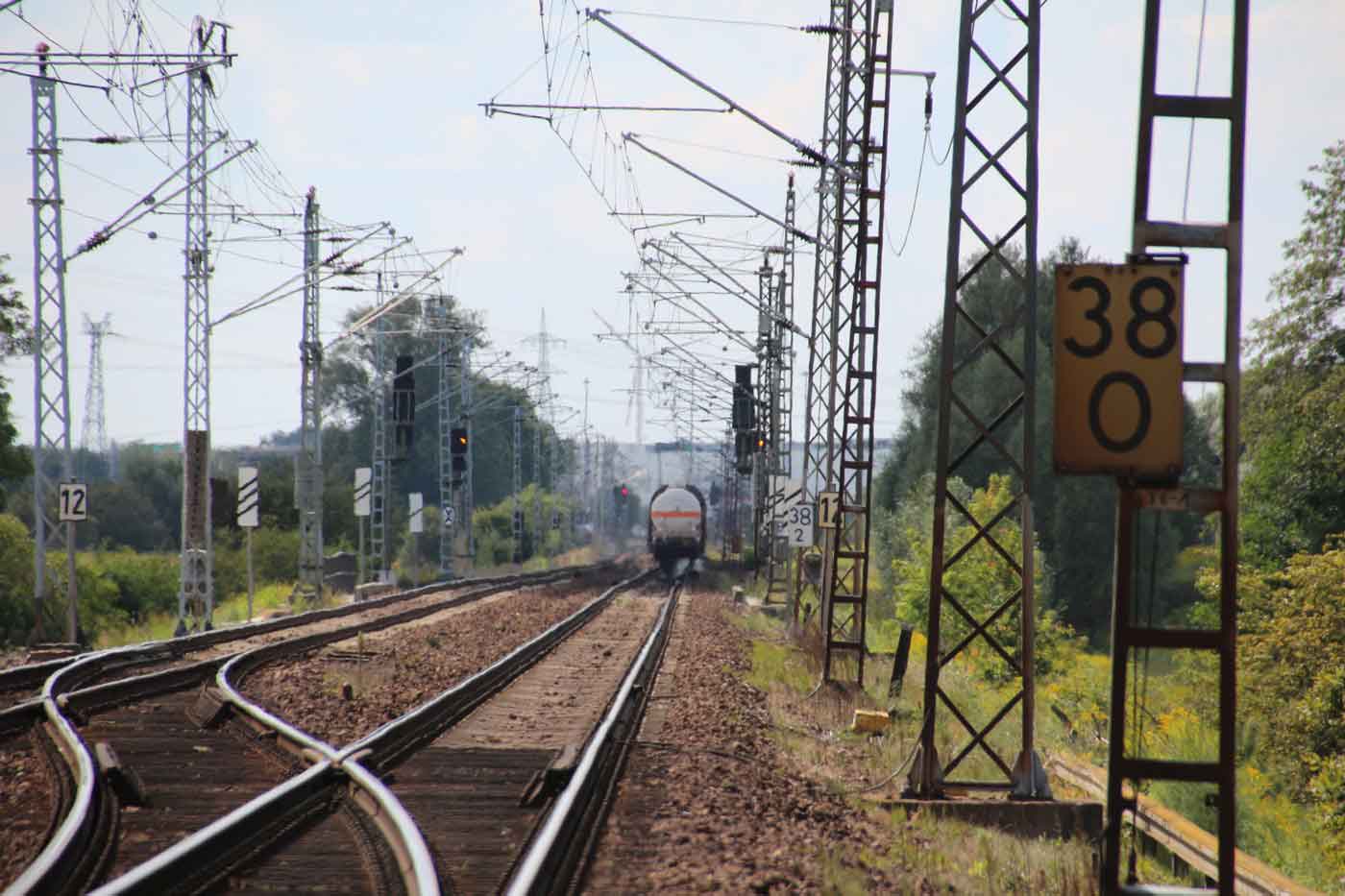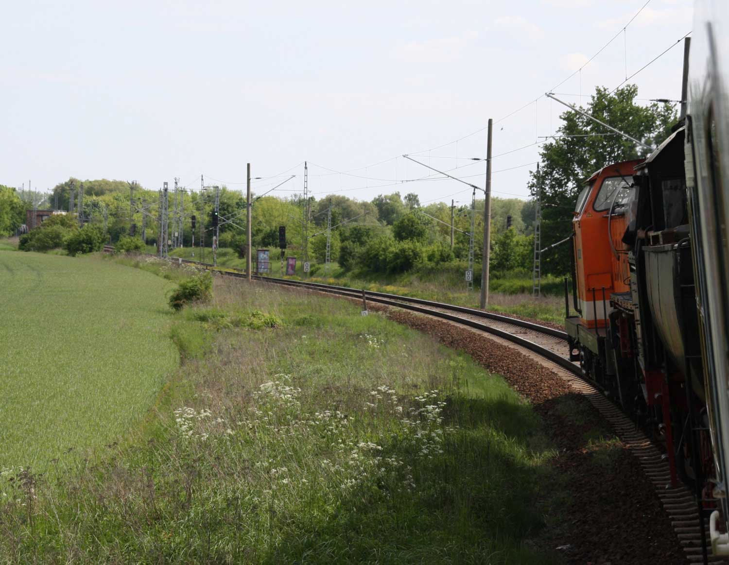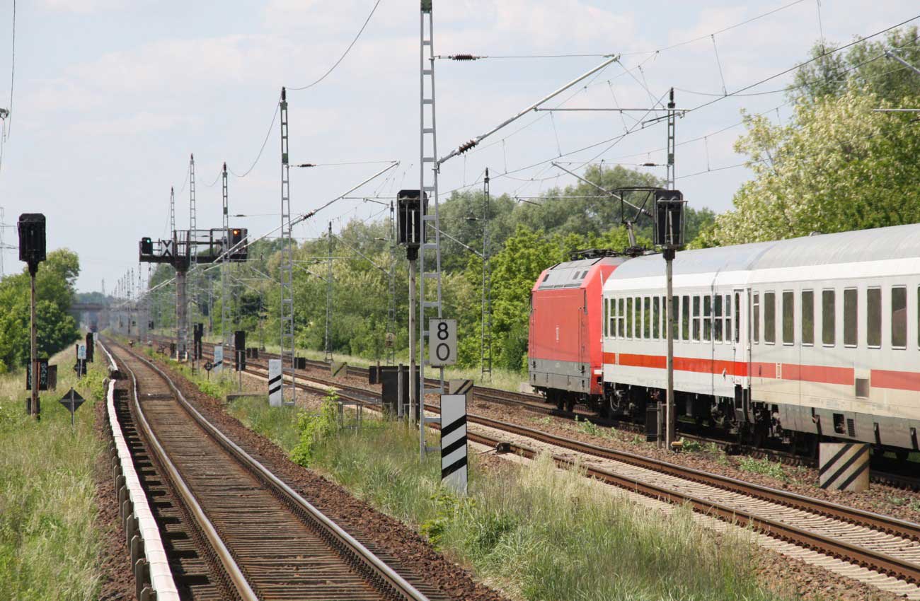 Über die Brücke im Hintergrund führen drei Gleise der Lehrter Bahn (1 Gleis Strecke 6107 und 2 Gleise Strecke 6185)