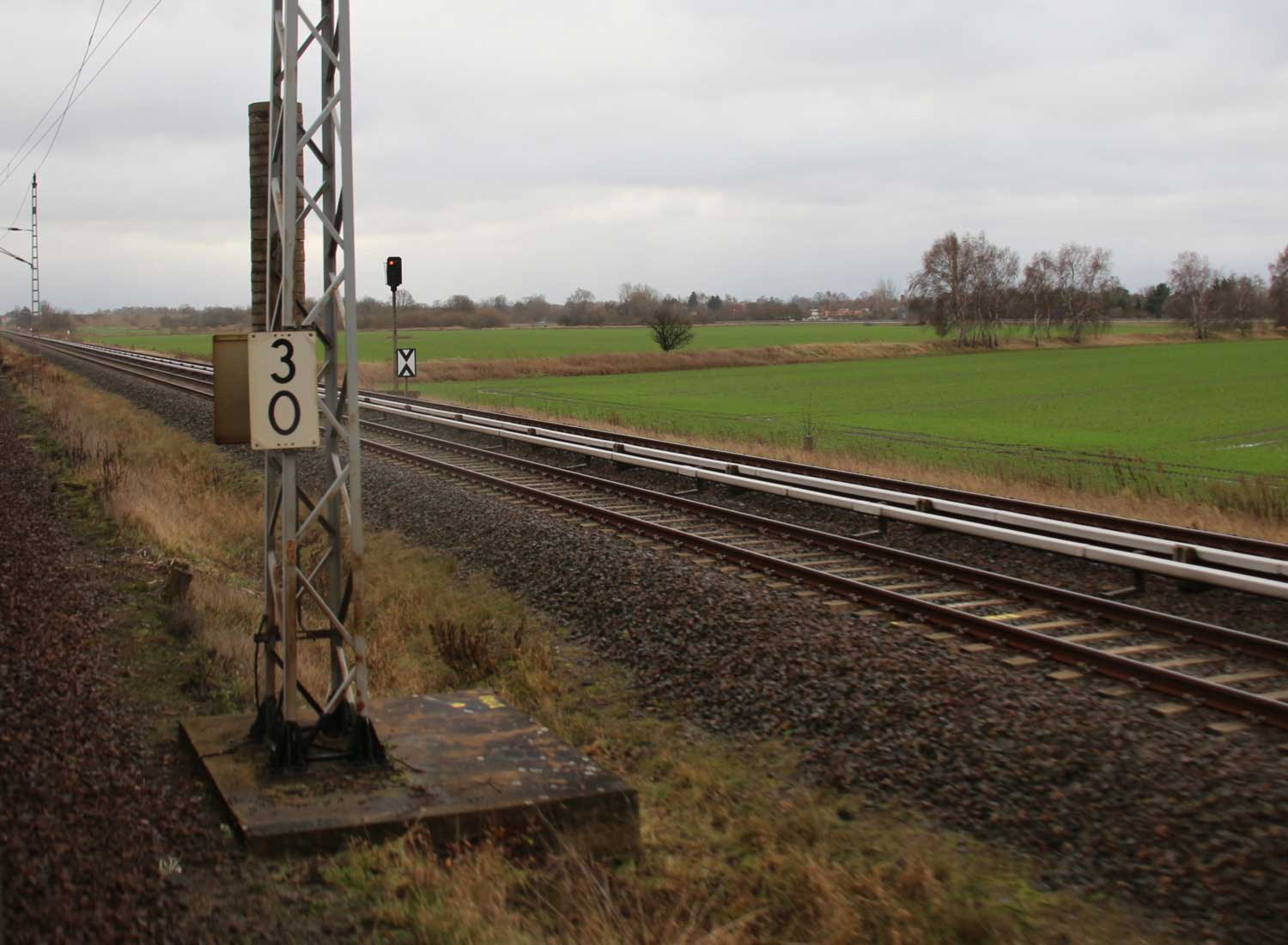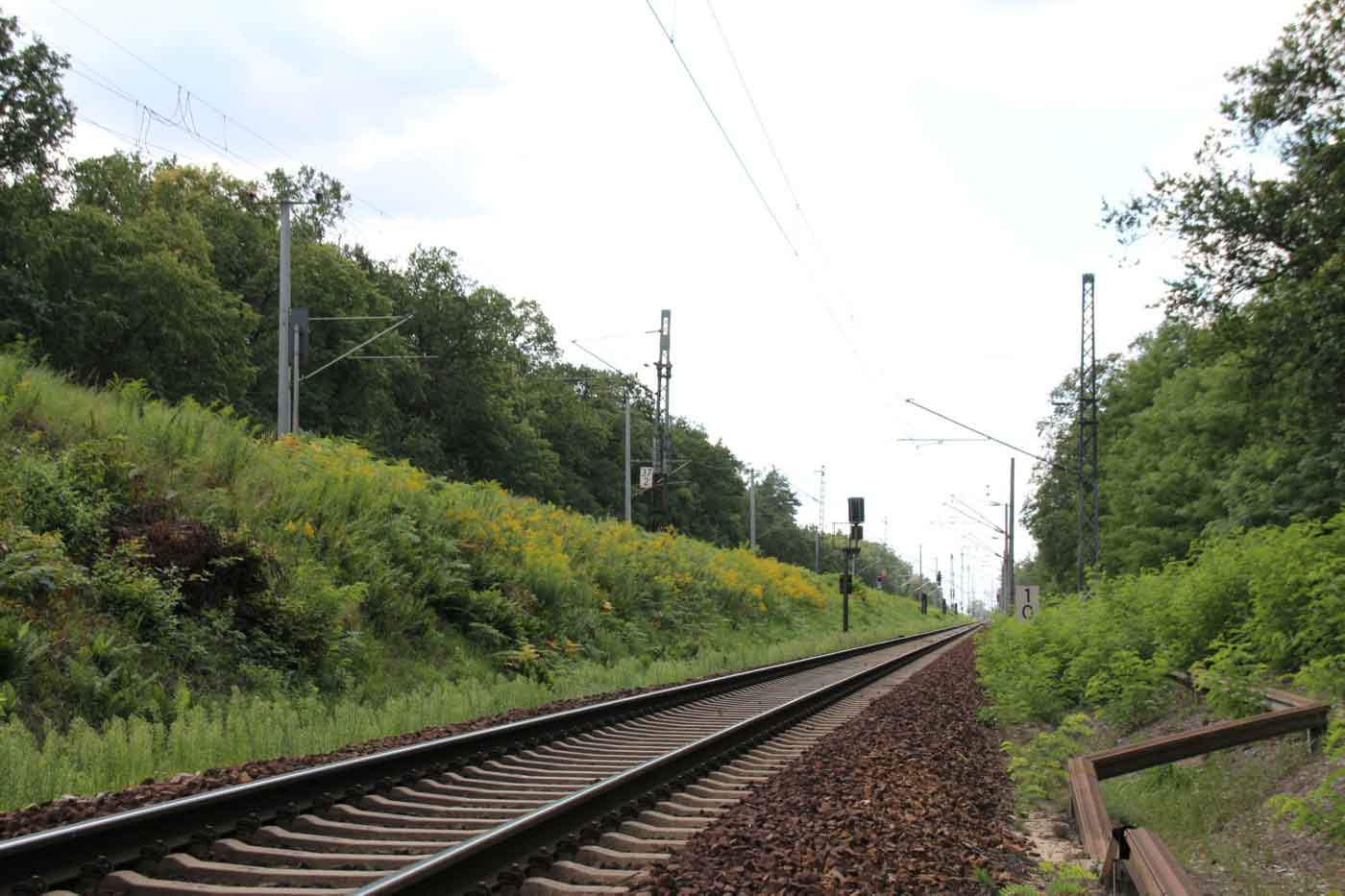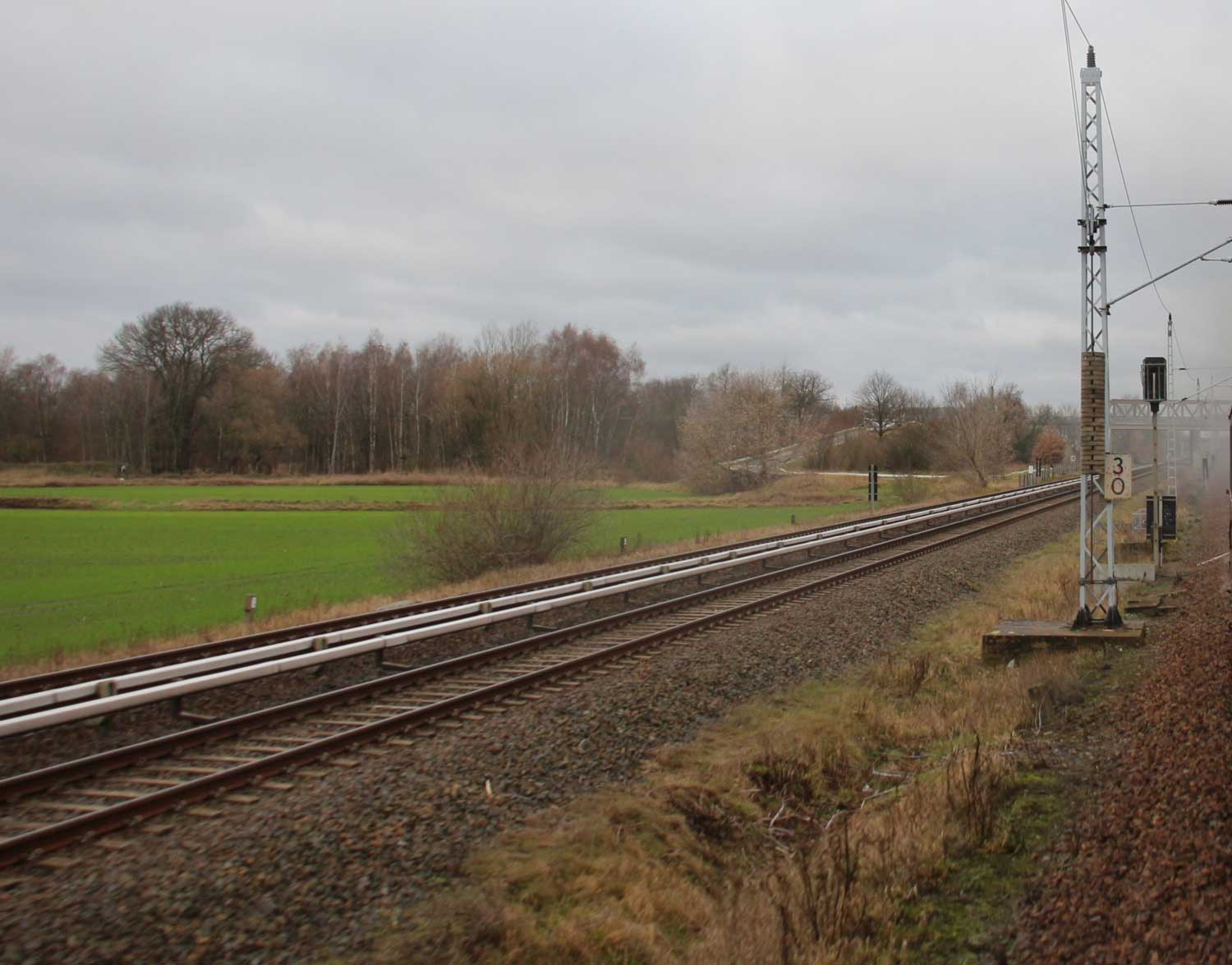 Links km 28,0 des bereits zu DR-Zeiten vorbereiteten Ausbaues (4-gleisig) der Lehrter Bahn