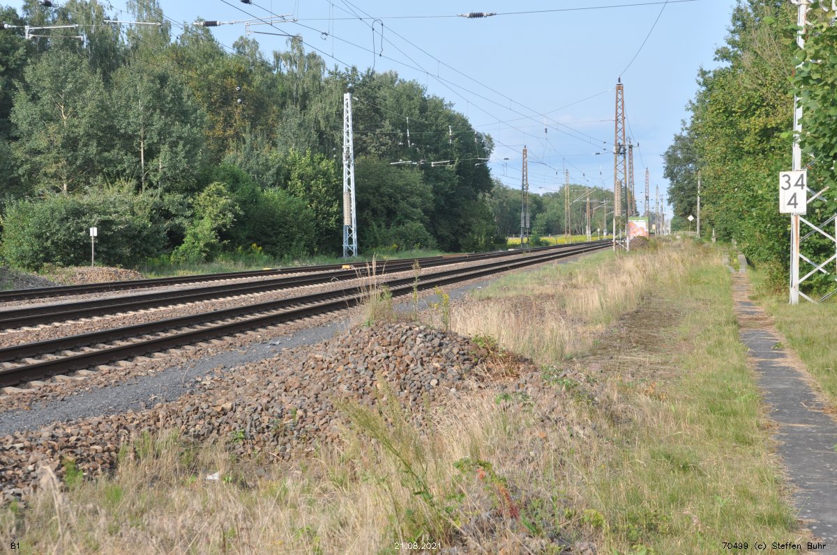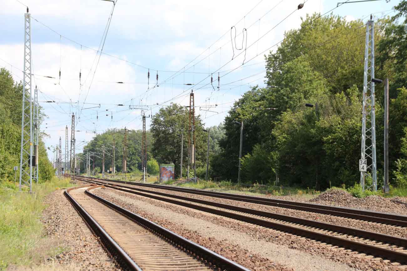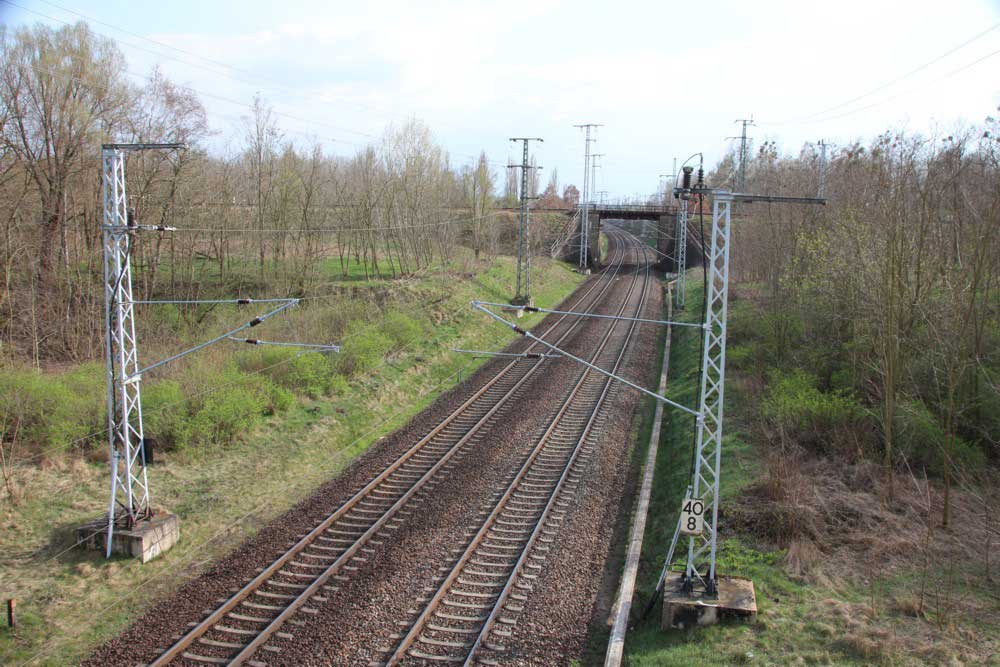Links km 28,0 des bereits zu DR-Zeiten vorbereiteten Ausbaues (4-gleisig) der Lehrter Bahn