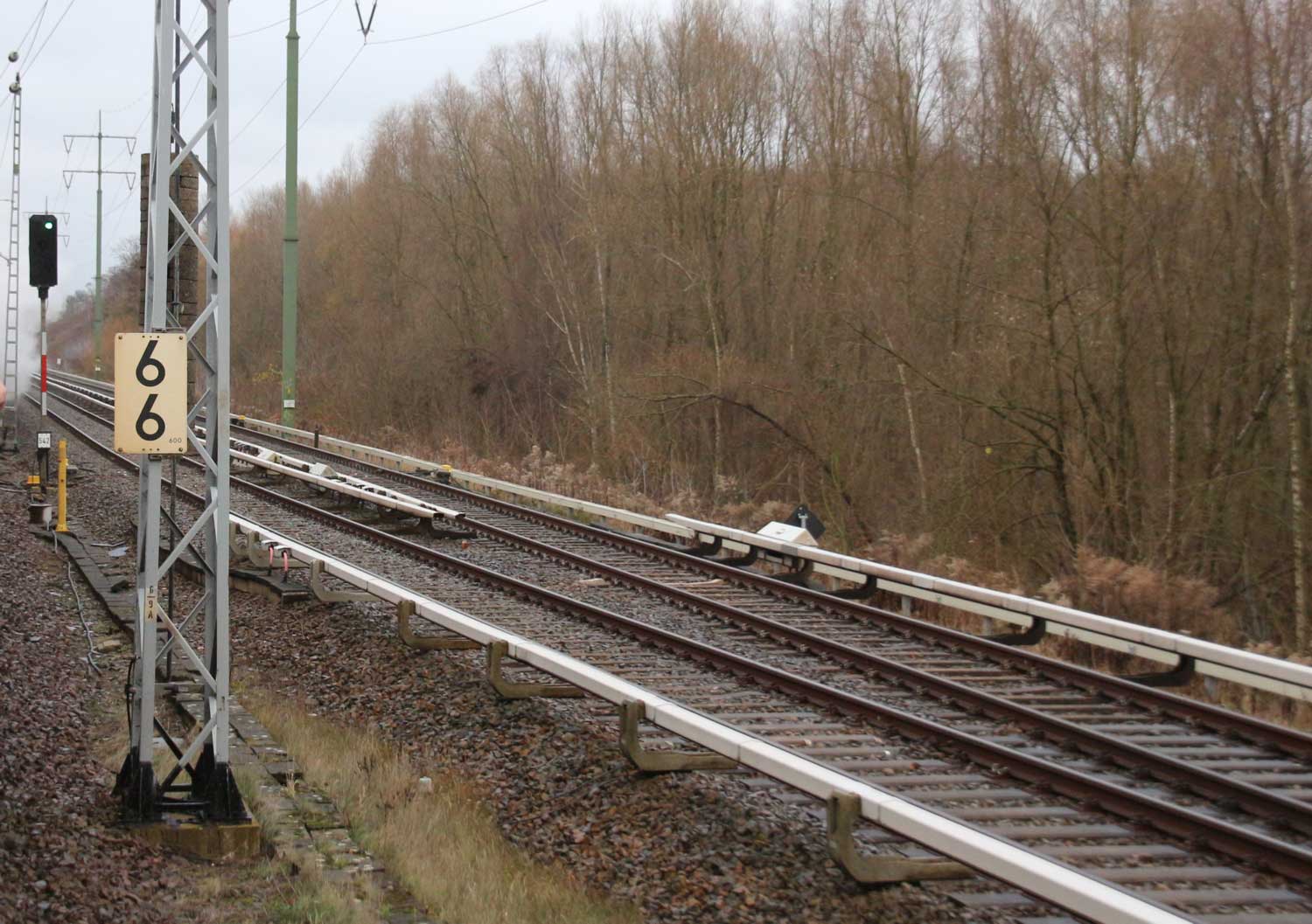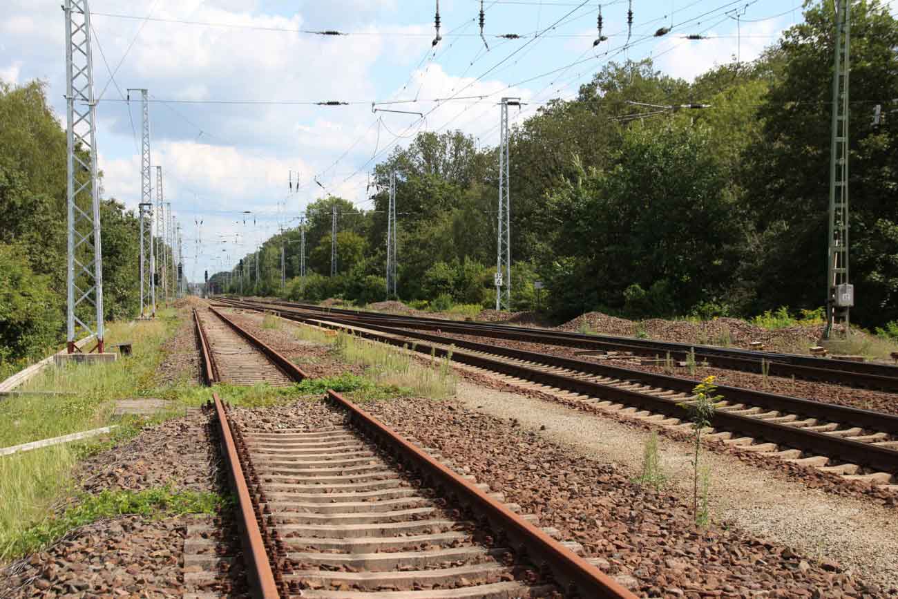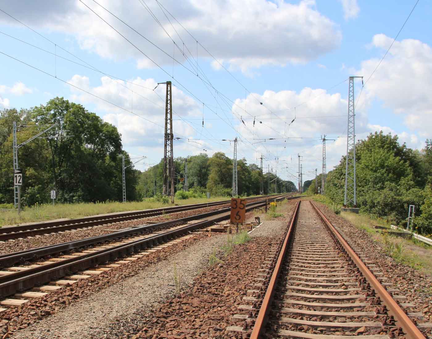 Rechts km 28,0 des bereits zu DR-Zeiten vorbereiteten Ausbaues (4-gleisig) der Lehrter Bahn