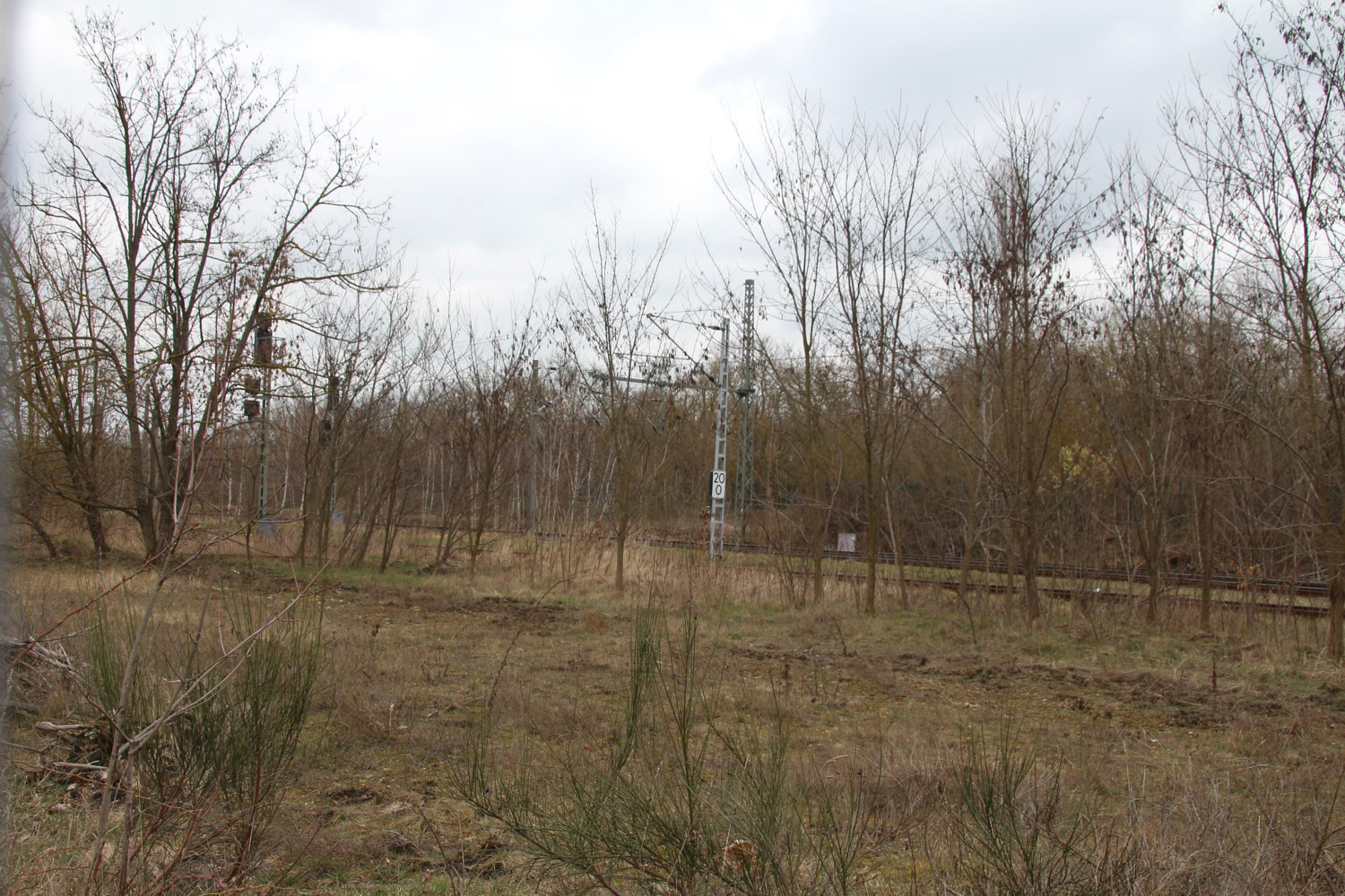 Im Hintergrund die Anhalter Bahn Richtung Halle (Saale)