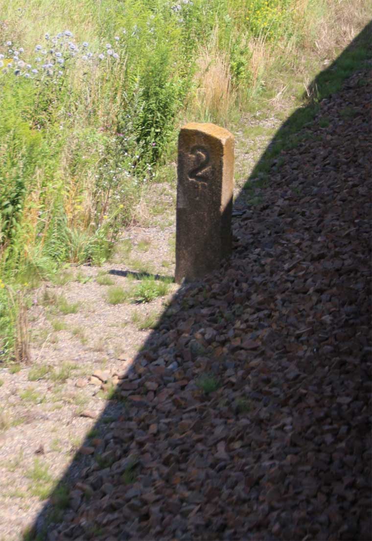 km 1,0 (Tafel und Stein rechts) gehören zur Strecke Abzw Genshagener Heide Mitte -0,03