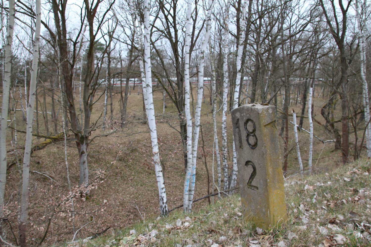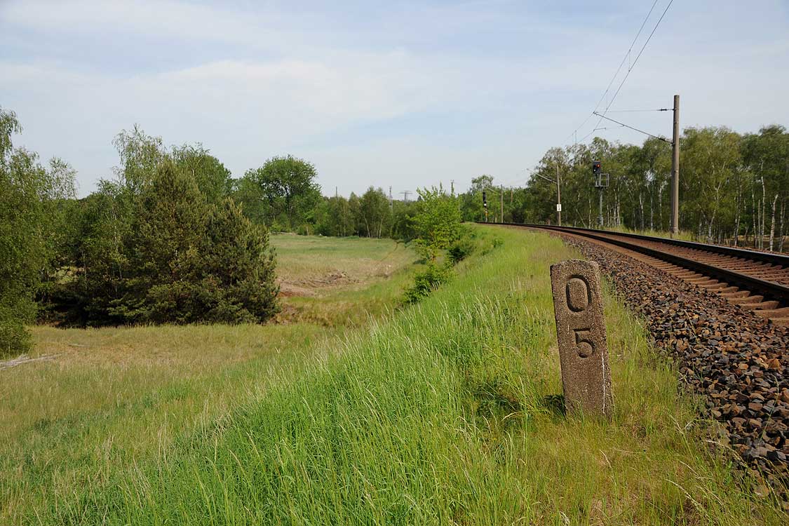 km 18,0 (Stein und Tafel) des Streckenastes Genshagener Heide, W 5, km 16,092 -