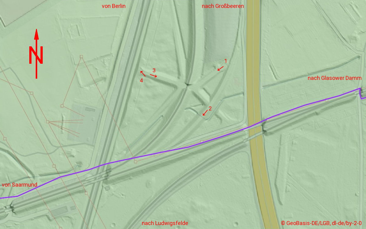 am Abzw Großbeeren West - Blick Richtung Abzw Genshagener Heide Mitte