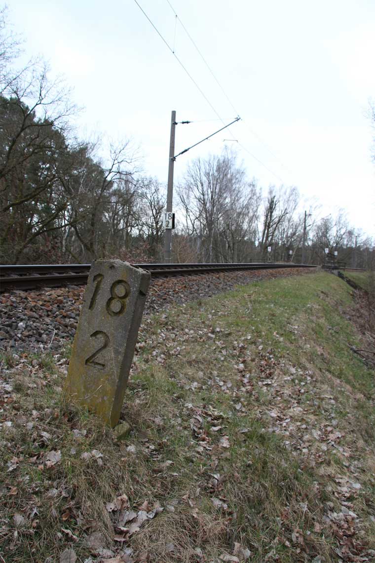 km 18,2 (Stein und Tafel) des Streckenastes Genshagener Heide, W 5, km 16,092 -