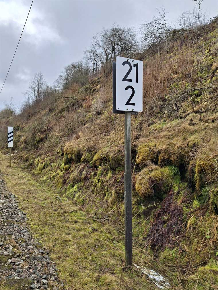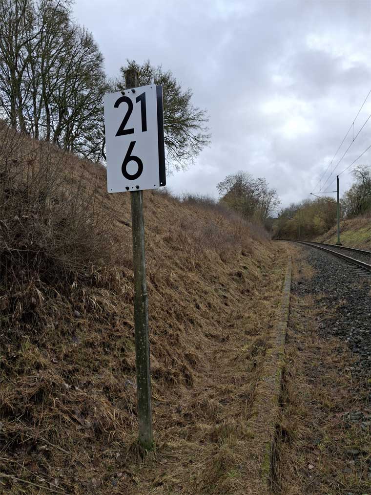 Links ist km 54,2 zu erkennen
