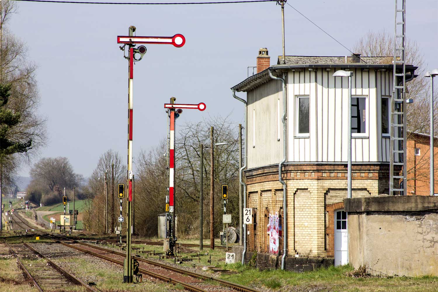 km 21,9 in Hungen mit Stellwerk Ho - Blick Richtung Gelnhausen