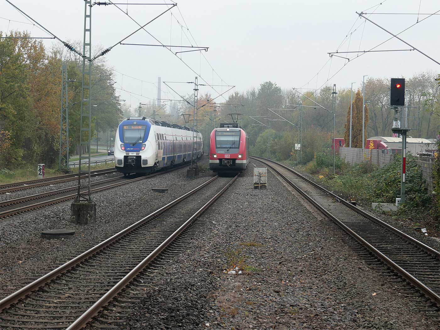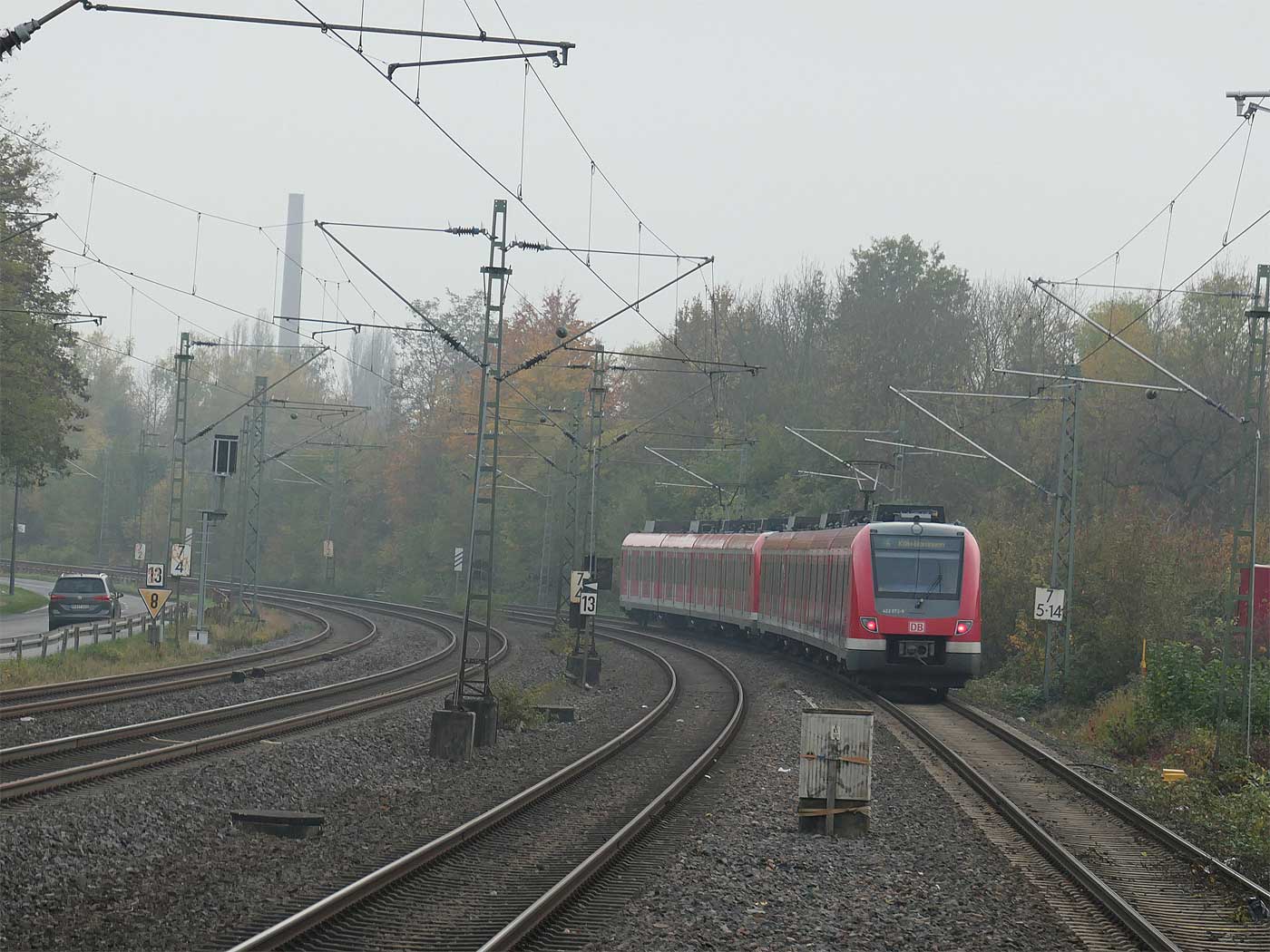 Gegenrichtungsgleis der S-Bahnstrecke Köln Hbf 0,0 - Langenfeld (Rheinl) 20,22 - Düsseldorf Hbf 39,50 - Duisburg Hbf 63,11 (2670) mit km 42,4