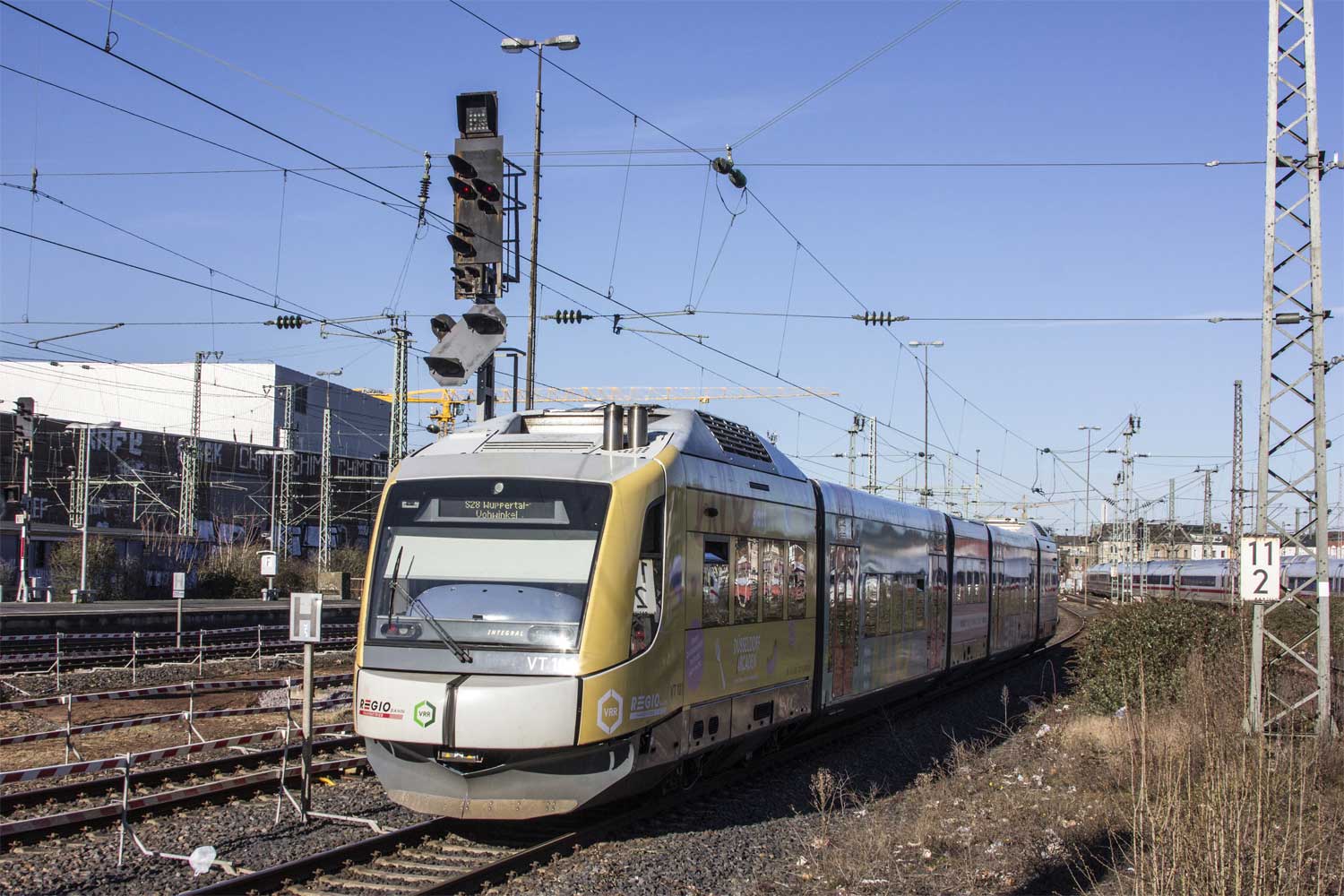 | Wuppertal-Vohwinkel | 31,87 | km 109,14 der Strecke Aachen Hbf 1,87 - Aachen West 4,78 - Mönchengladbach Hbf 63,91 - Neuss 80,94 - Düsseldorf Hbf 88,40 - Wuppertal Hbf 115,37 - Hagen Hbf 141,74 - Schwerte (Ruhr) 155,60 - Scherfede 283,44 - Warburg (Westf) 292,91 - Kassel Hbf 345,18 (2550) |