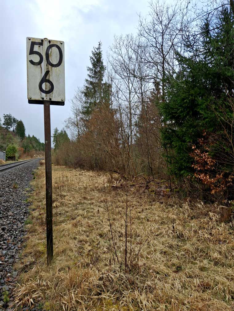 Im Hintergrund die Strecke Eutingen im Gäu - Freudenstadt Hbf - Schiltach mit der Kilometertafel 2,2