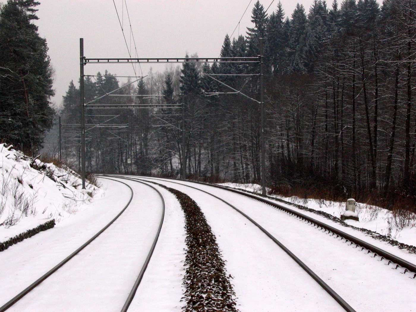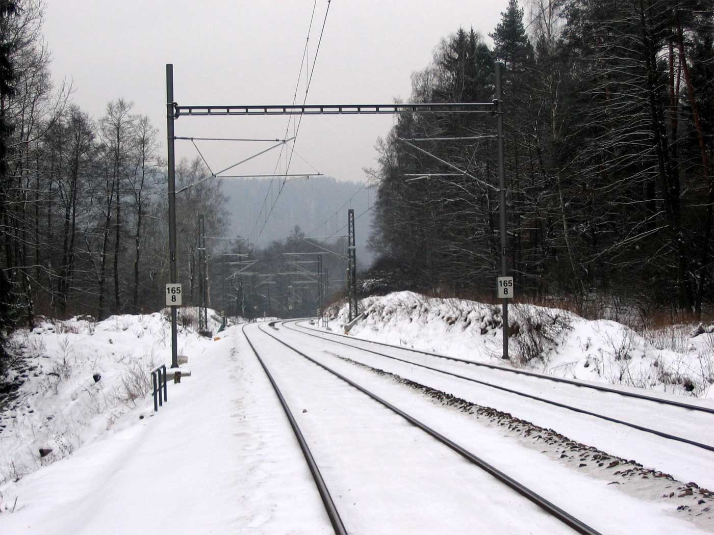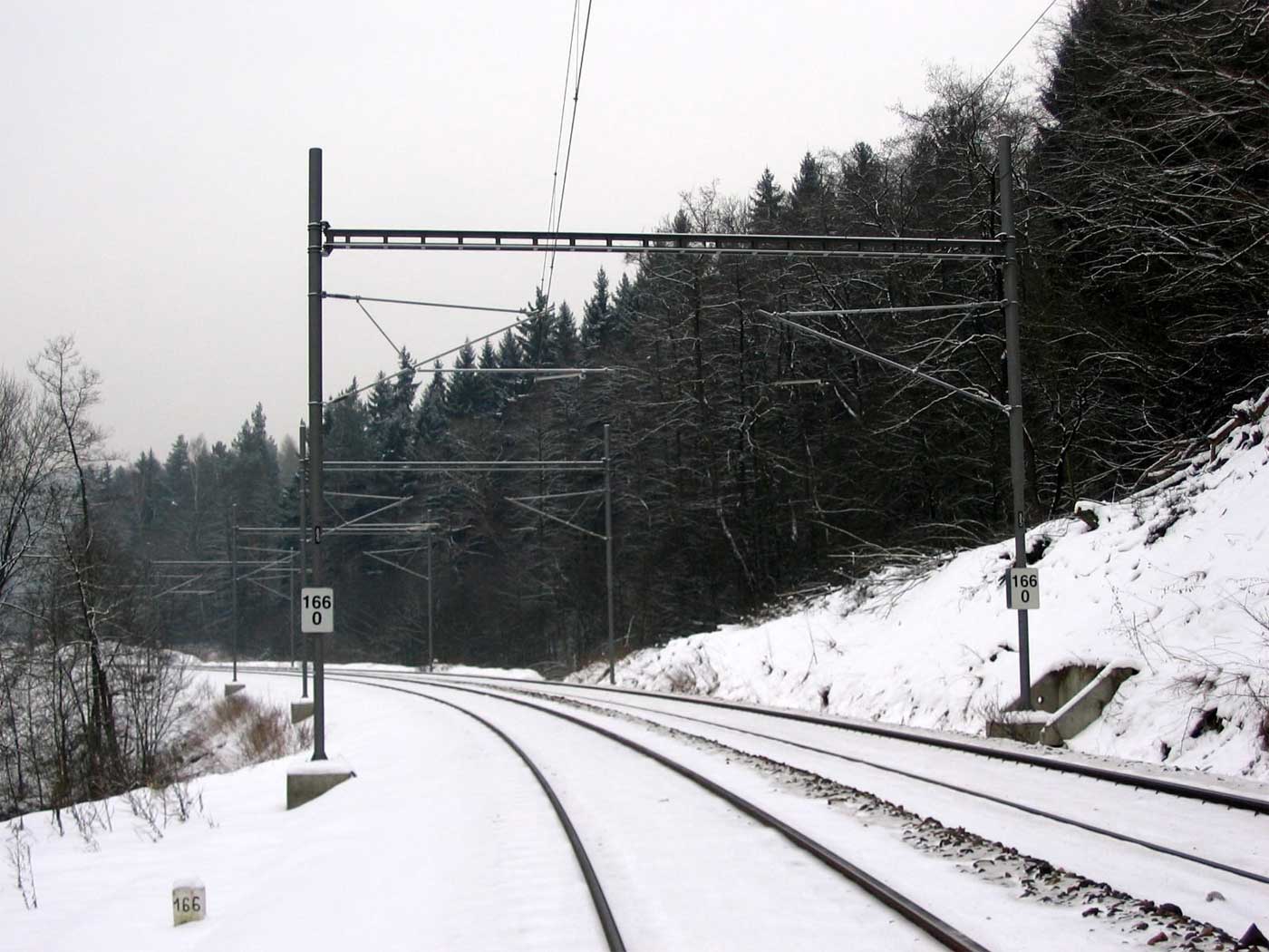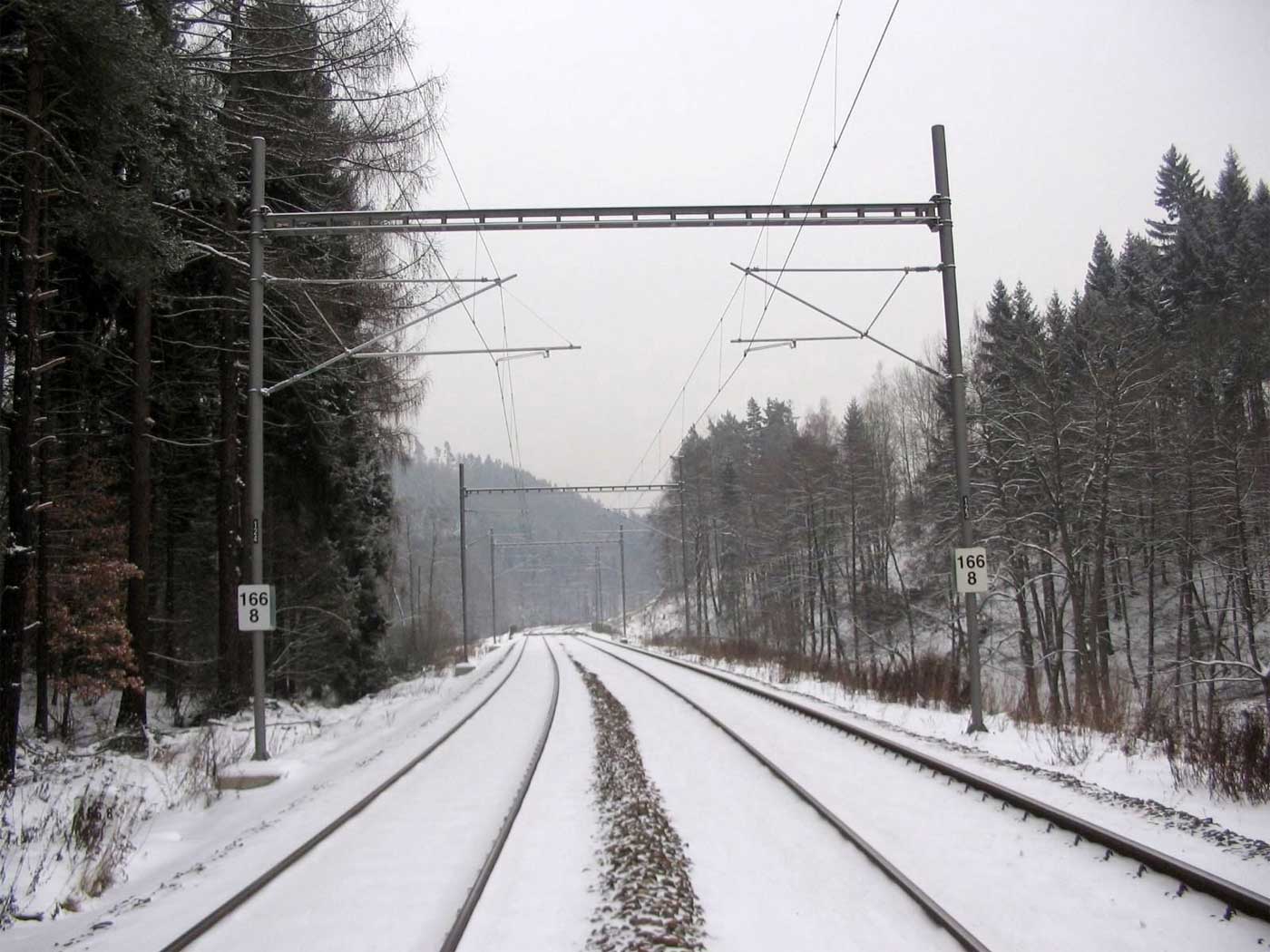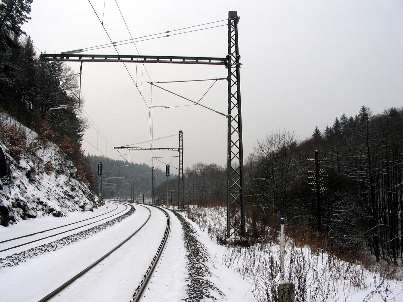 km 233,3 (Stein) und km 233,4 (Tafel) zwischen Tršnice (Tirschnitz) und Cheb (Eger) - Blick Richtung Cheb (Eger)