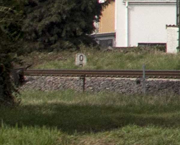 km 0,0 (verstekt) in Beienheim - Blick Richtunh Schotten
