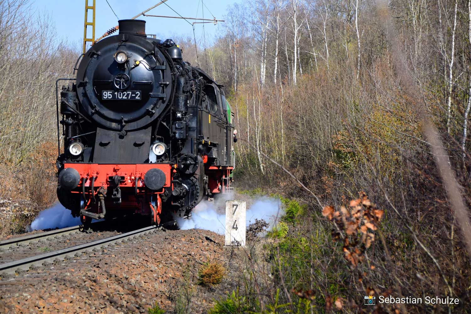95 027 am 26.02.2012 mit Sonderzug am km 0,8 in Blankenburg (Harz)