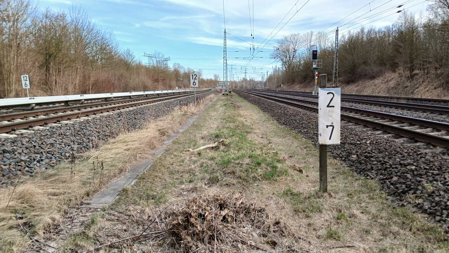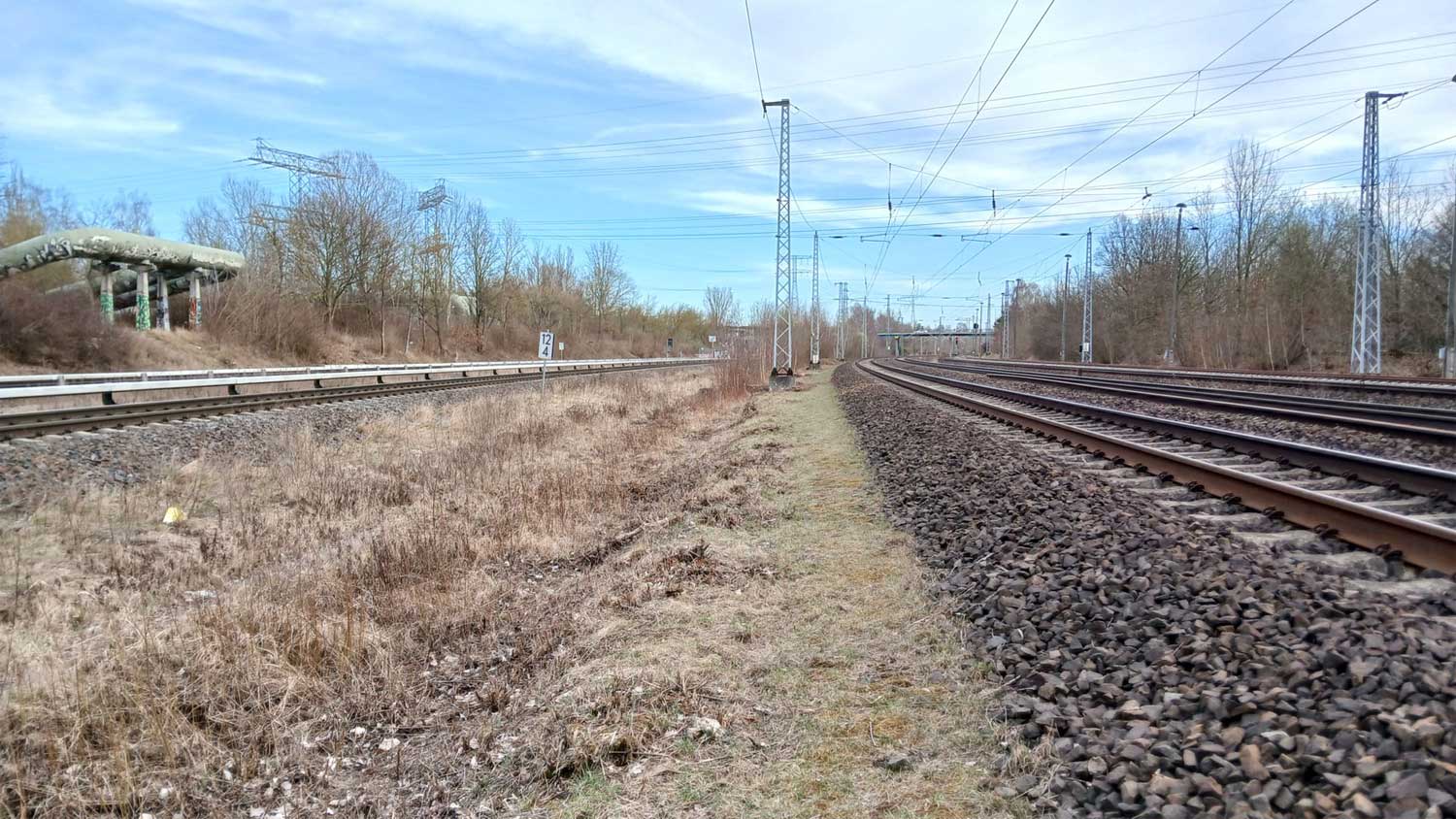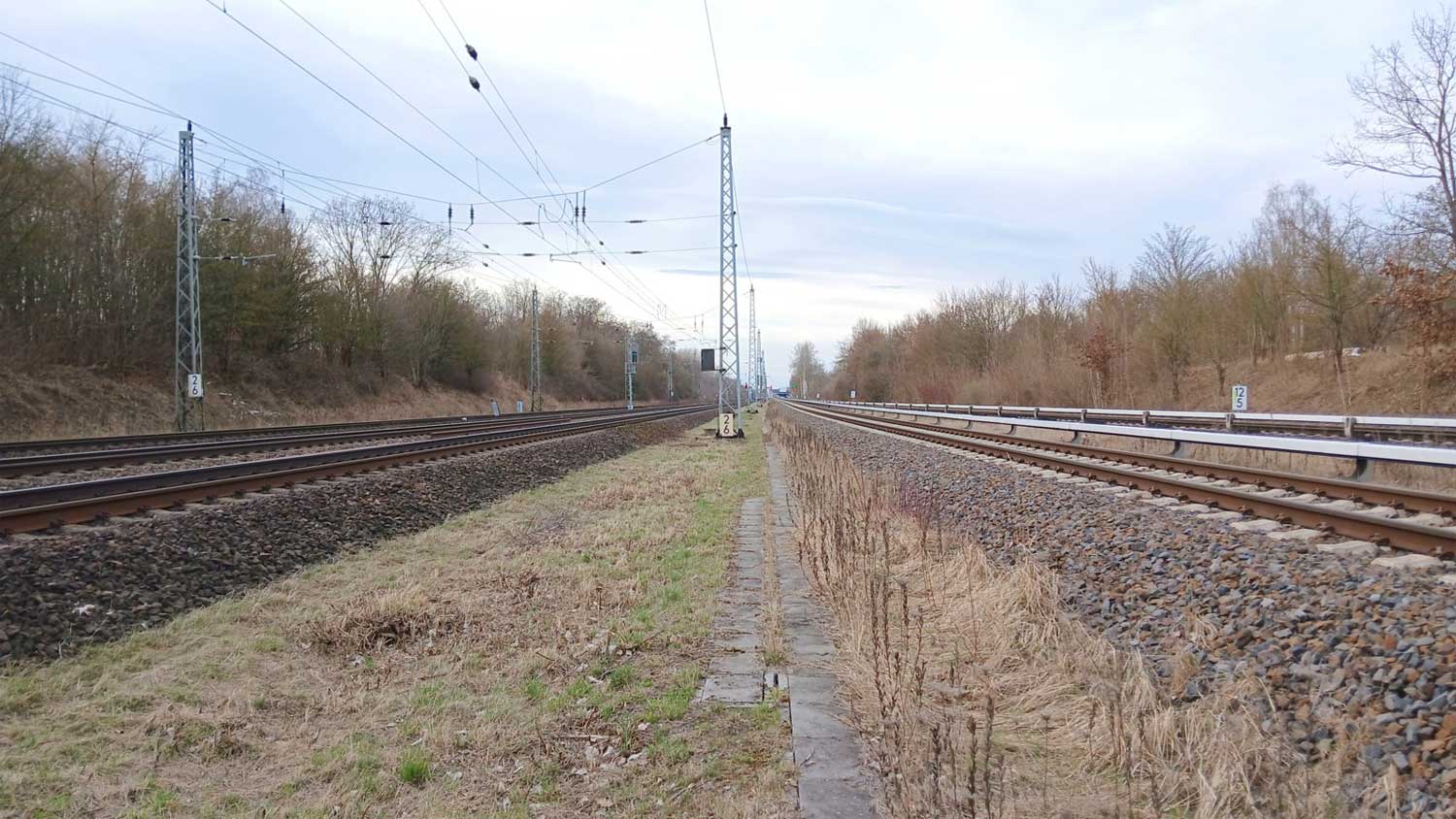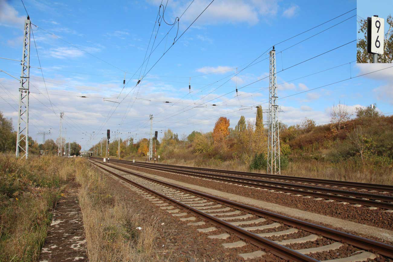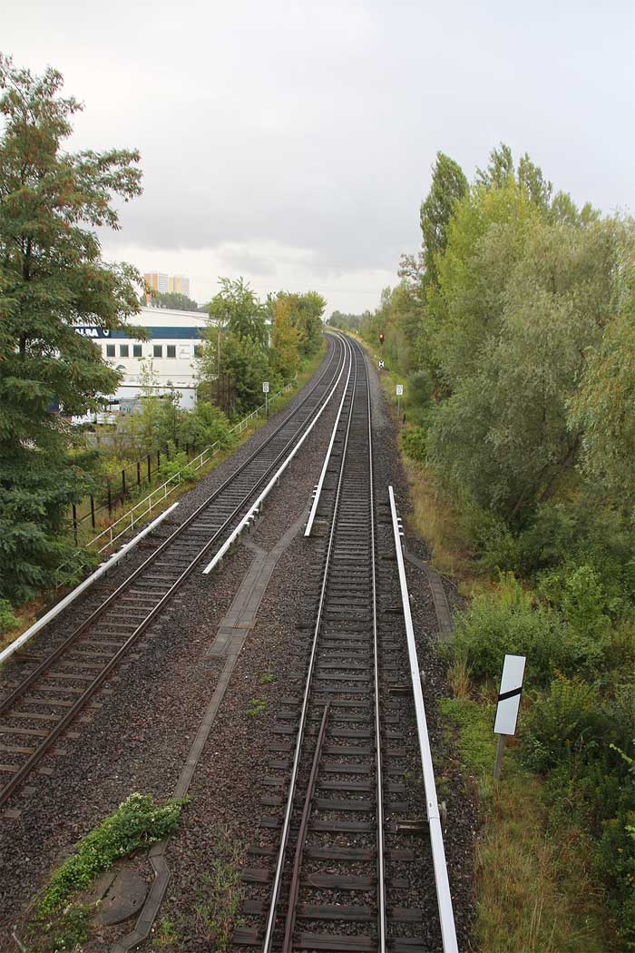 km 9,4 und km 9,5 (Gegenrichtungsgleis) zwischen Abzweig von Strecke 6011 und Gehrenseestraße - Blick Richtung Abzw