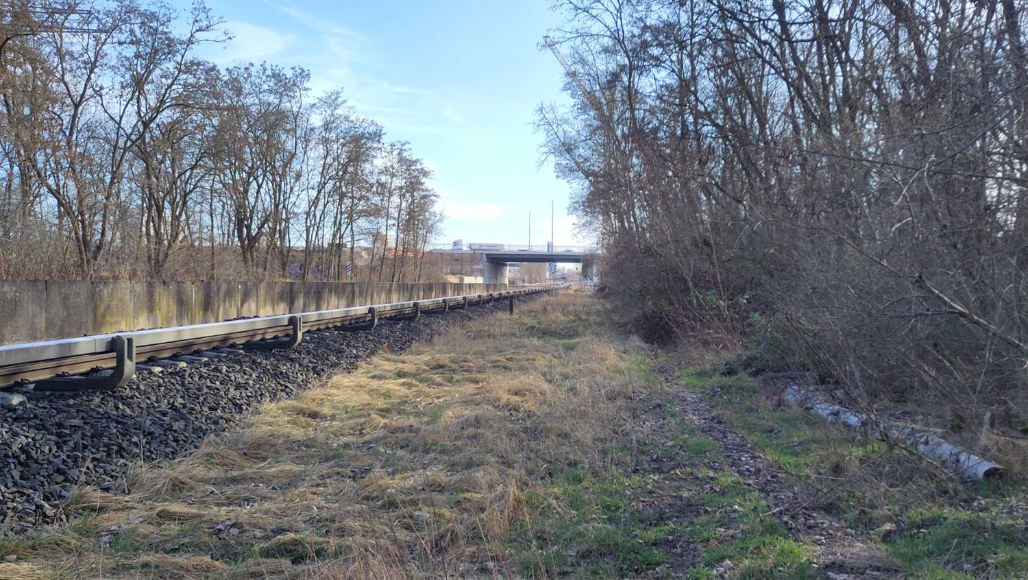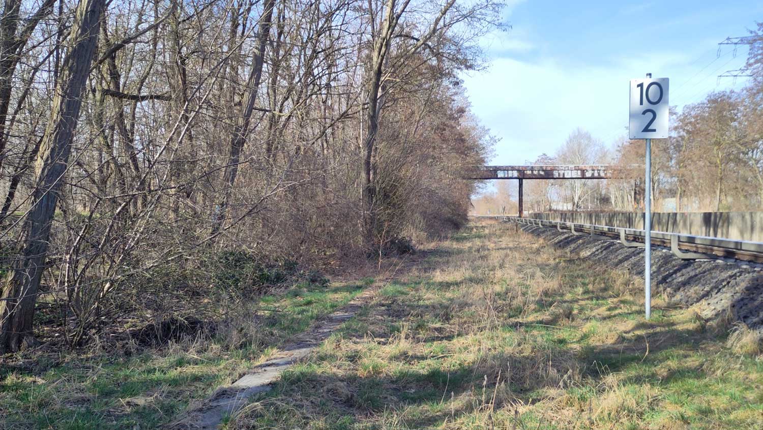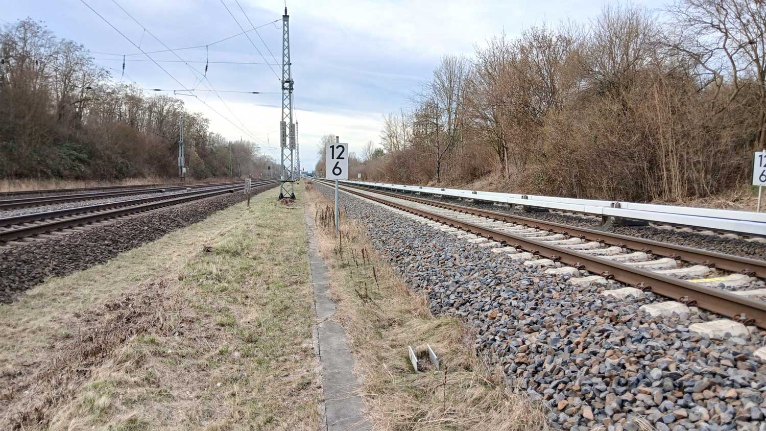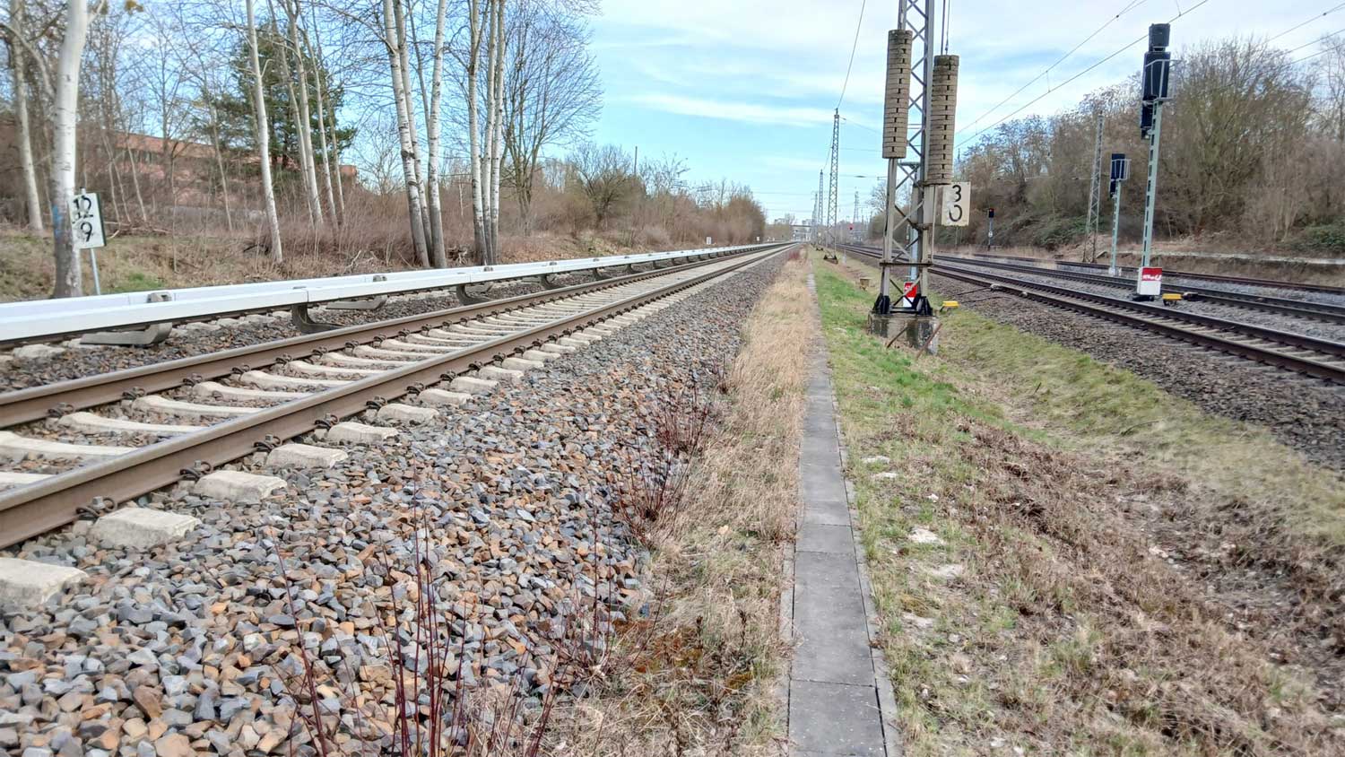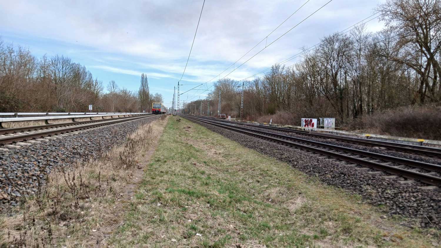 km 9,4 und km 9,5 (Gegenrichtungsgleis) zwischen Abzweig von Strecke 6011 und Gehrenseestraße - Blick Richtung Abzw