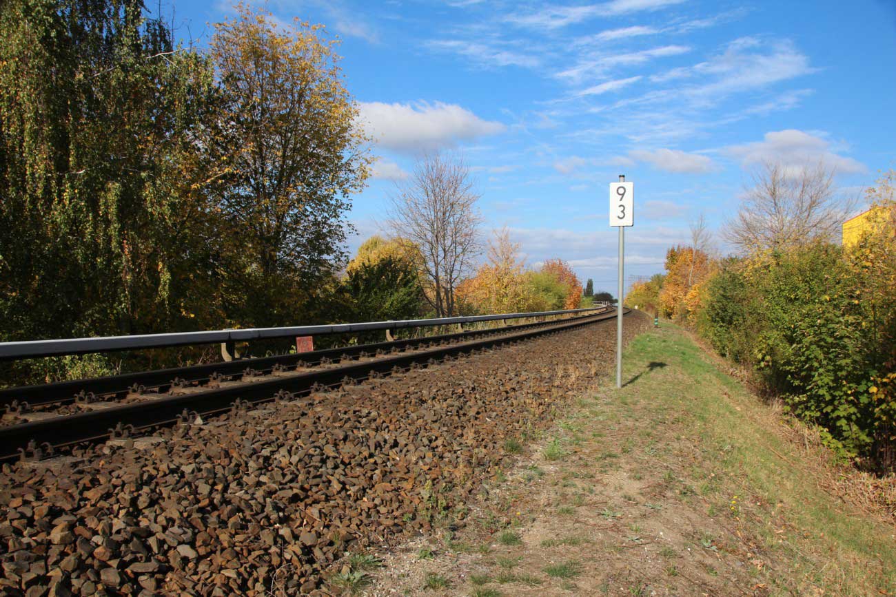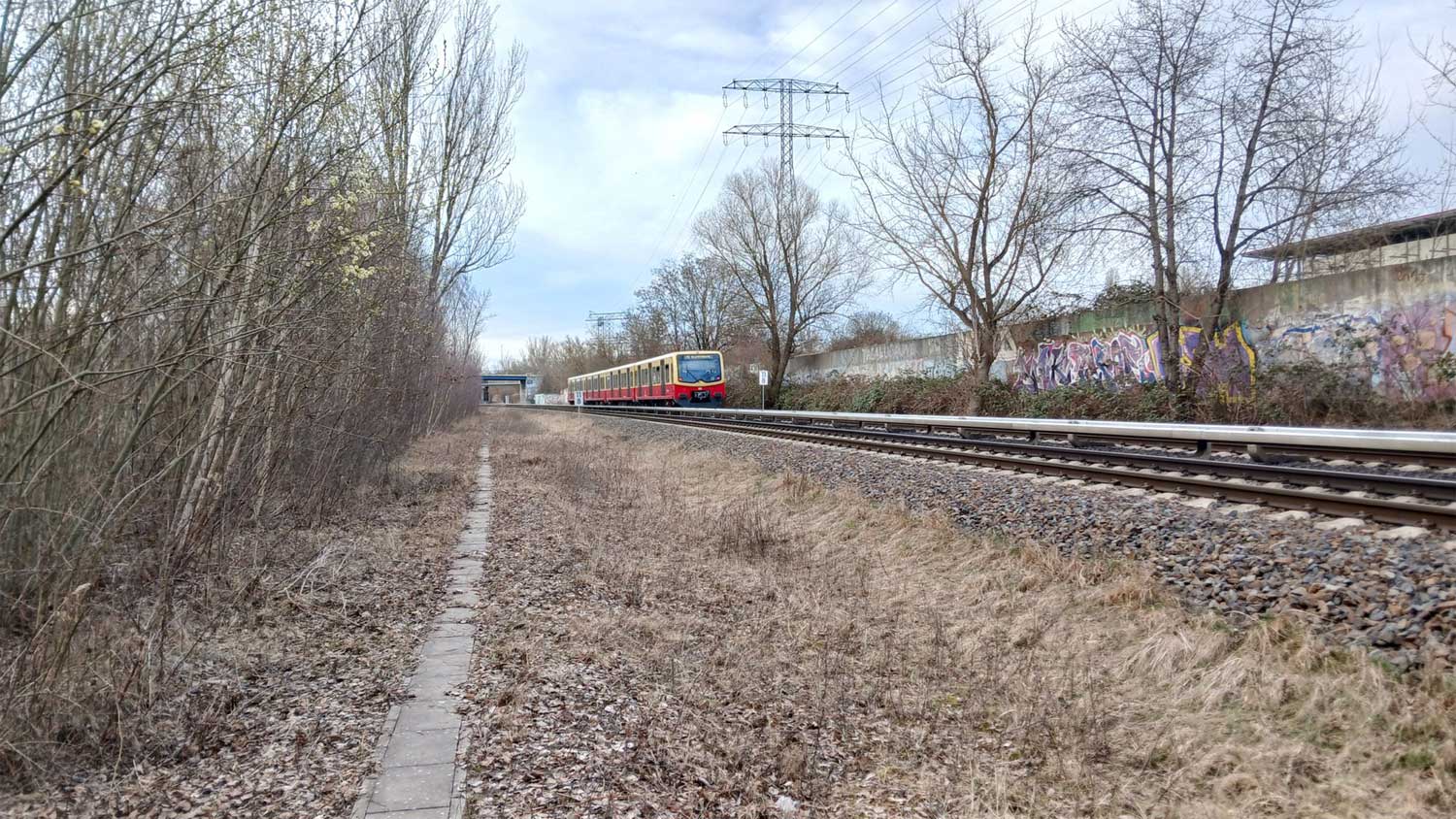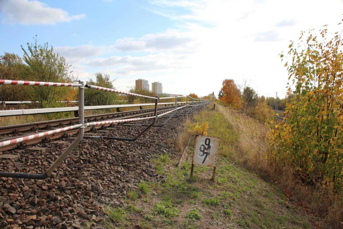 Rechts der Berliner Außenring (BAR-Streckenabschnitt 6067) mit km 2,9
