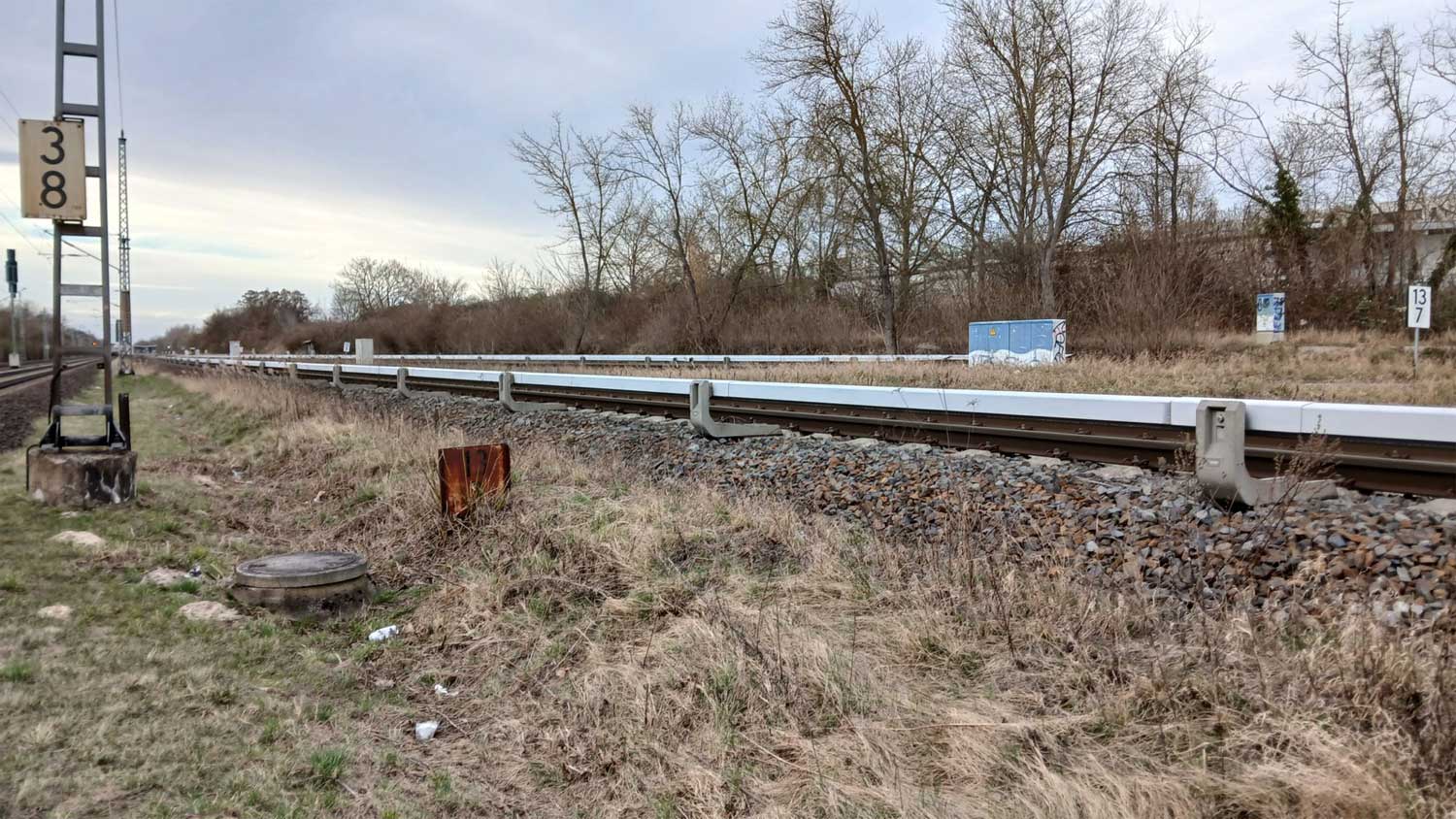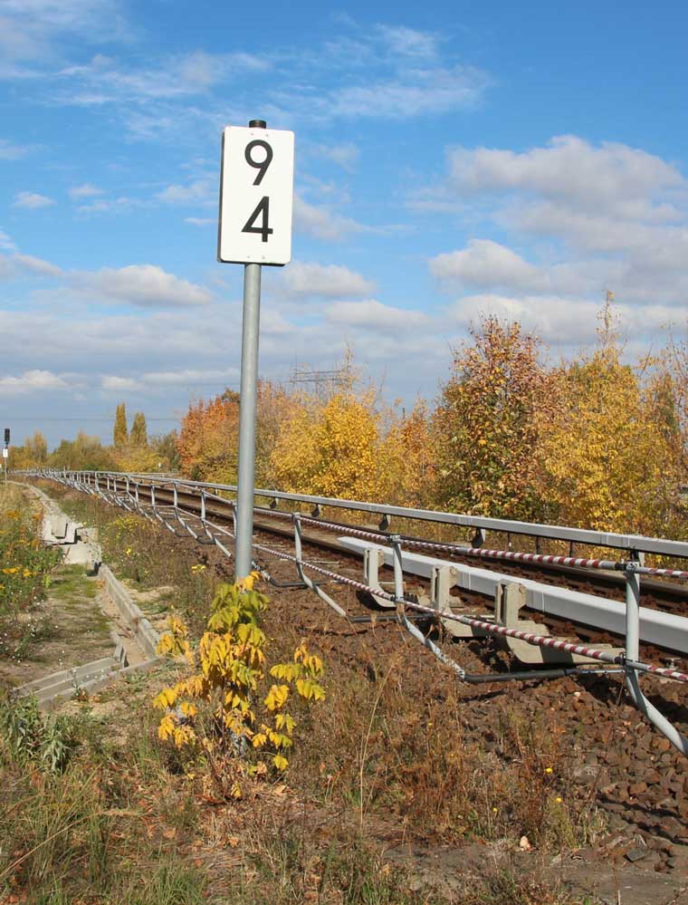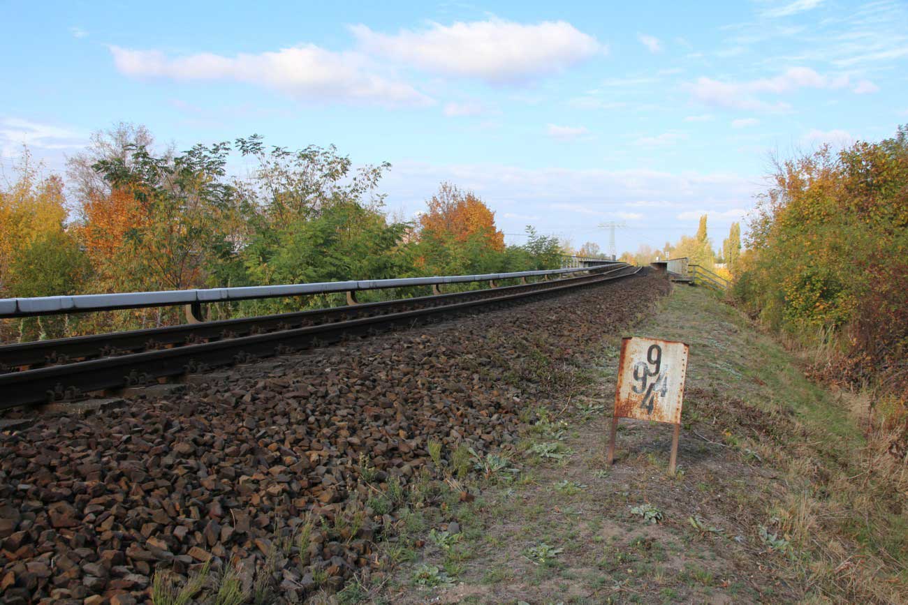 Rechts der Berliner Außenring (BAR-Streckenabschnitt 6067) mit km 3,4