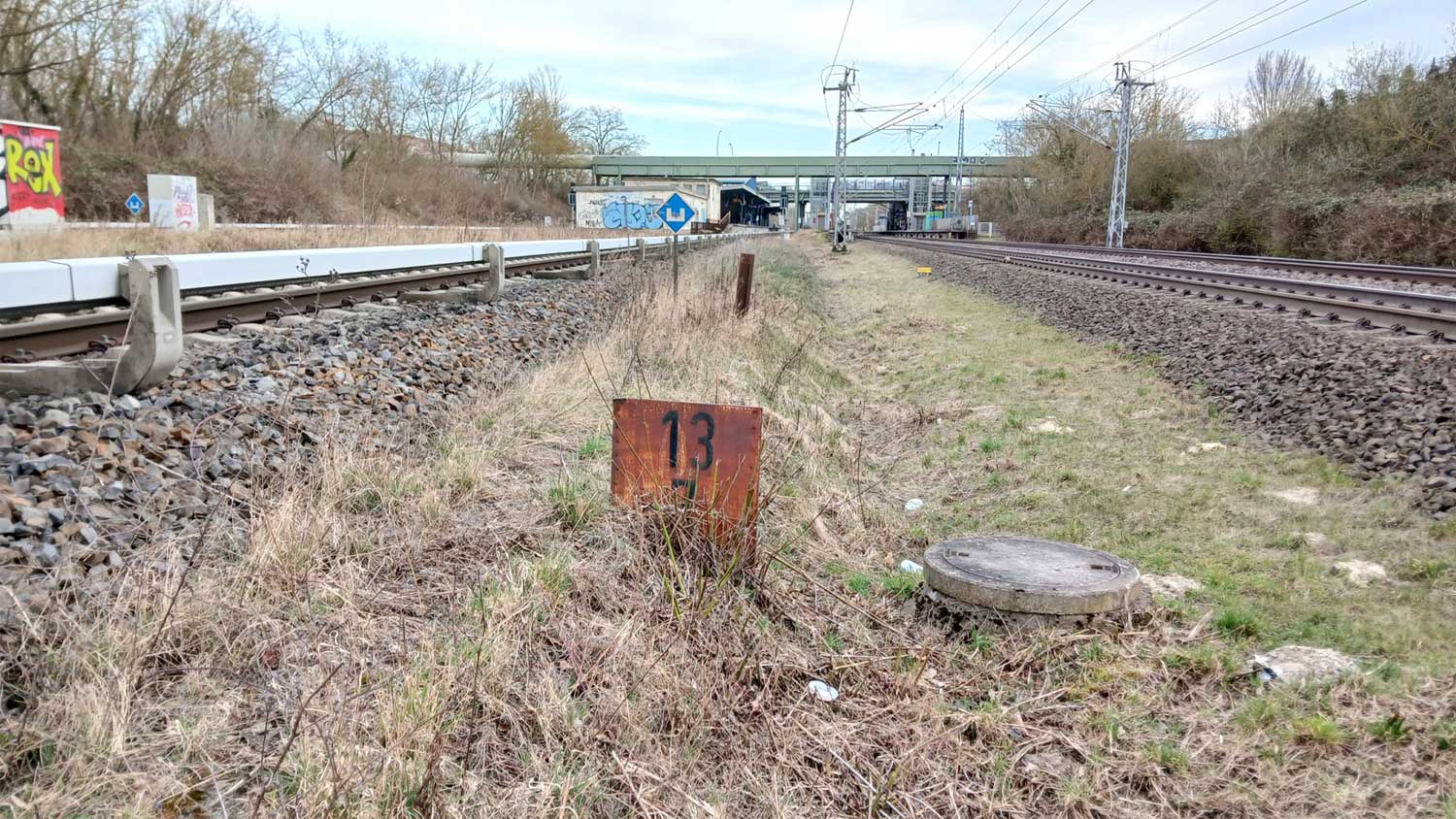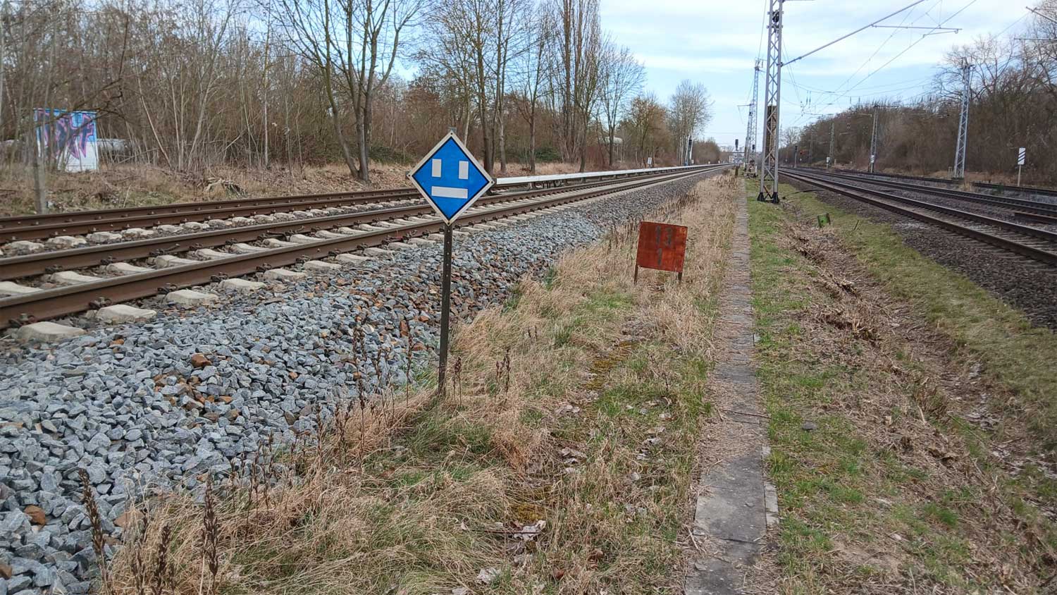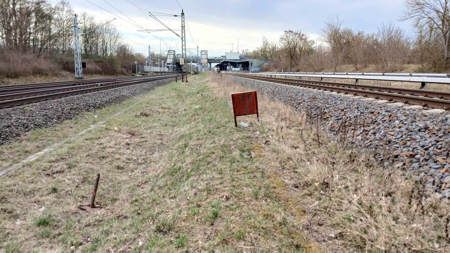 Rechts der Berliner Außenring (BAR-Streckenabschnitt 6067) mit km 3,4