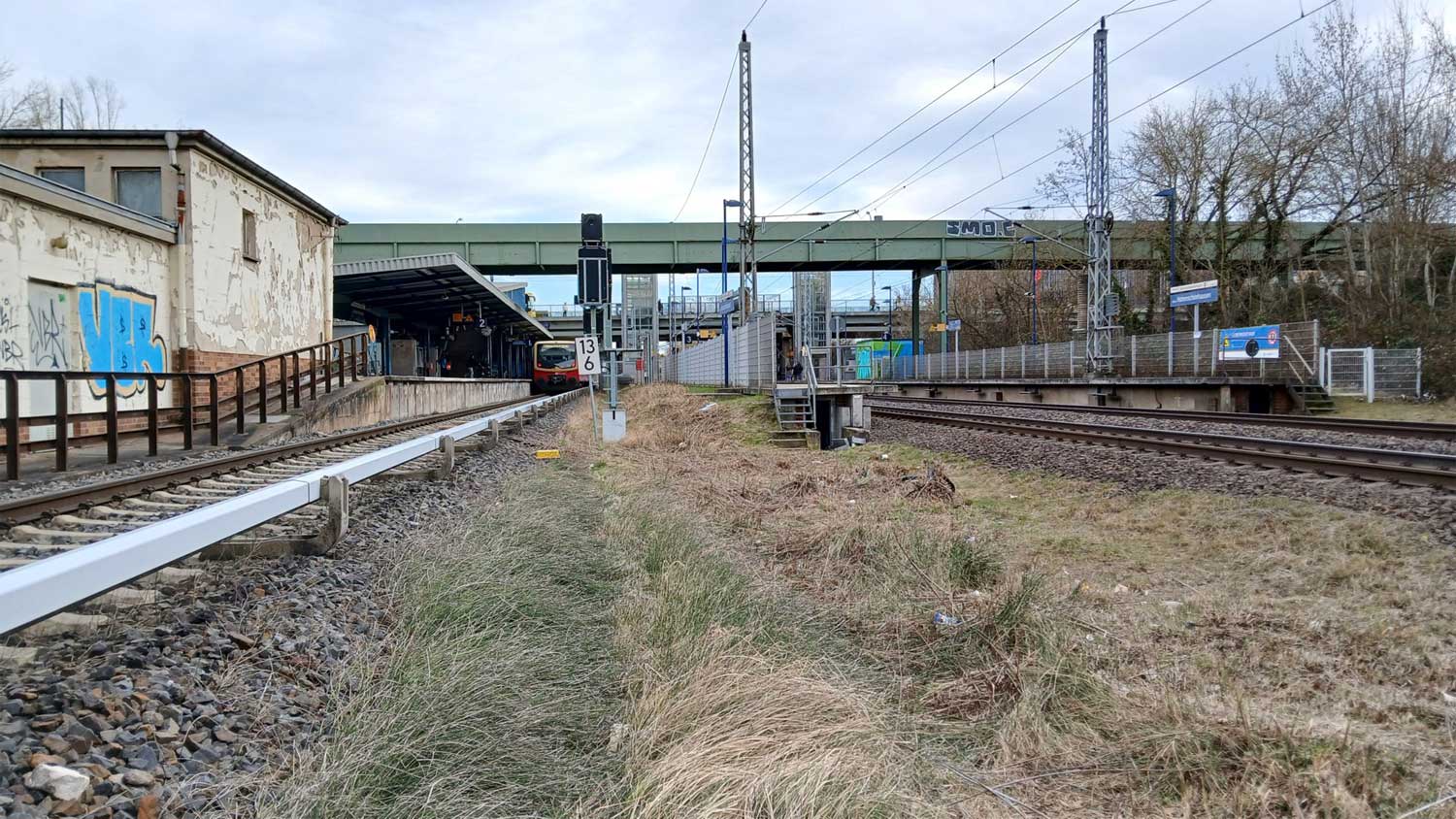 km 9,4 (Gegenrichtungsgleis) zwischen Abzweig von Strecke 6011 und Gehrenseestraße