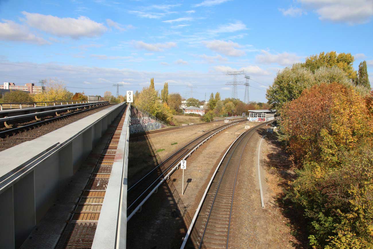 Rechts der Berliner Außenring (BAR-Streckenabschnitt 6067) mit km 2,7