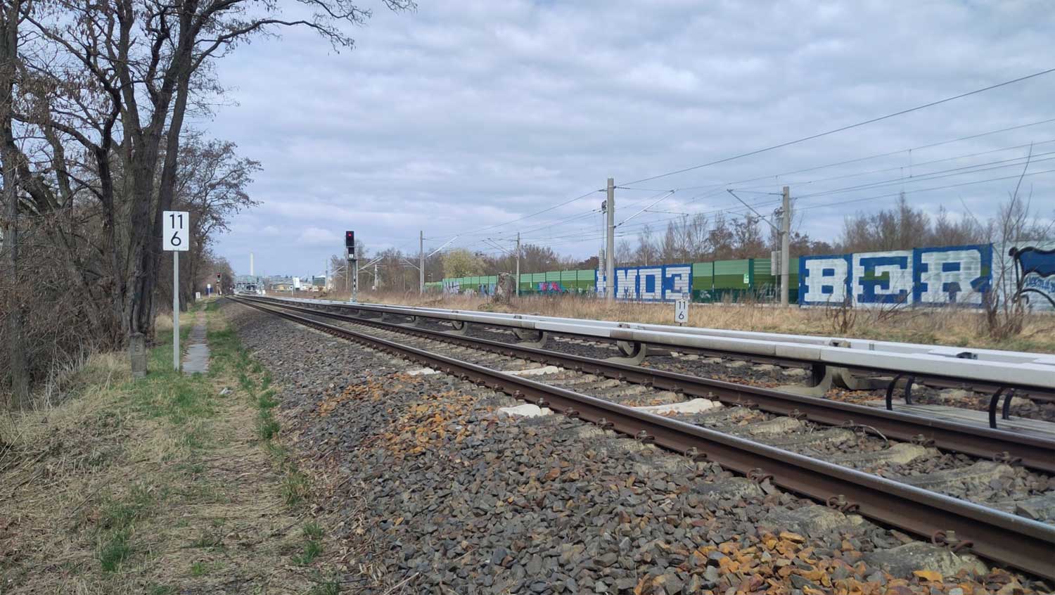 In der Mitte das Gleis der Dresdener Bahn (6135) ist verschwunden