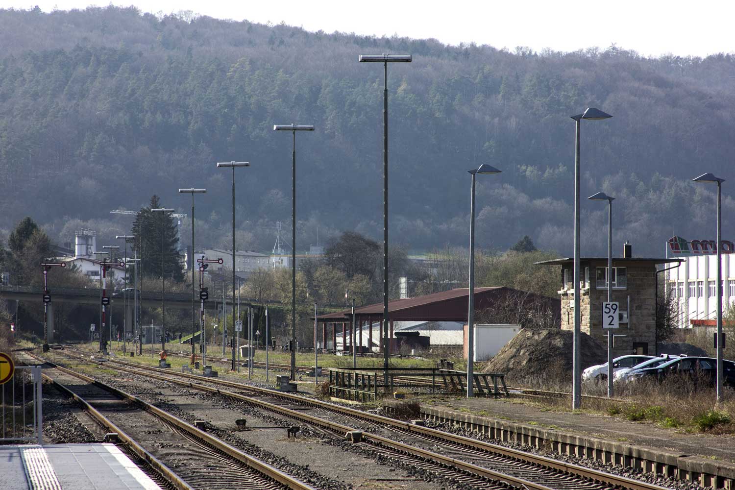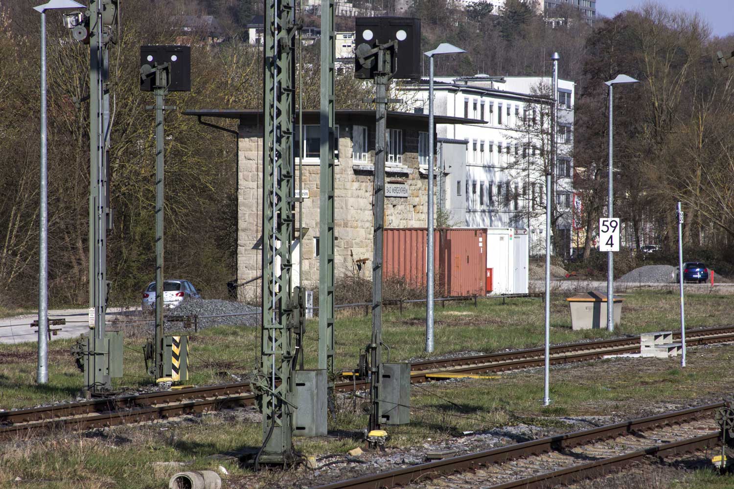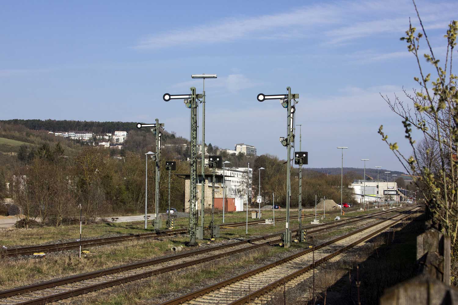 km 59,6 (rechts neben der Lok) in Bad Mergentheim - Blick Richtung Crailsheim