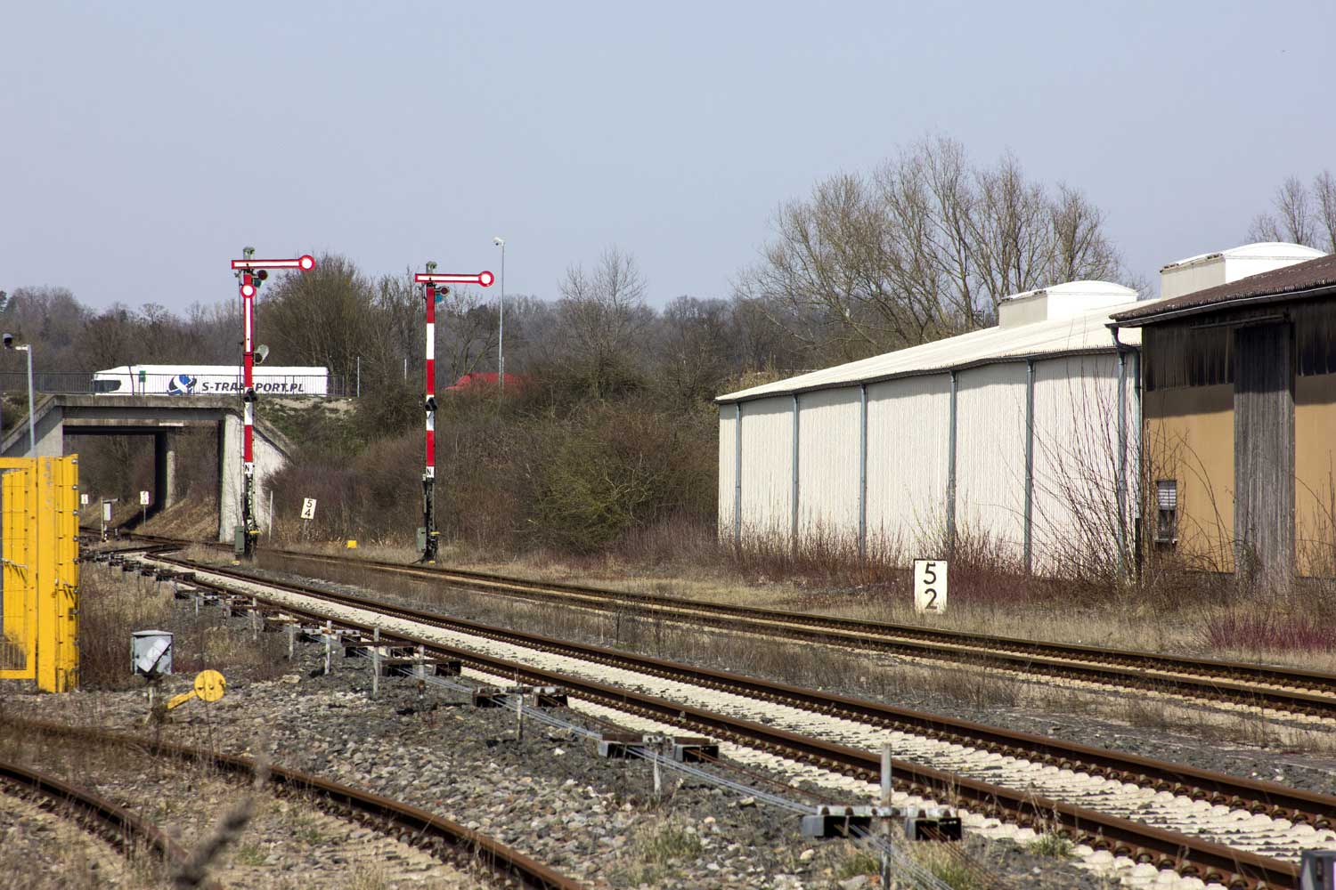 Die Weichenlaterne für die Weiche des mittleren Gleises steht wegen Platzmangels rechts vom rechten Gleis