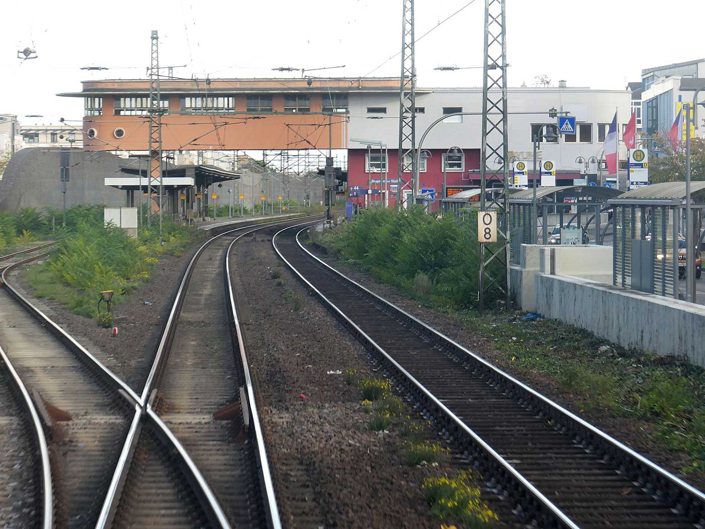 km 0,4 (rechts) gehört zur Strecke Mainz Hbf 0,0 - Wiesbaden Hbf 9,53 (rechtes Gleis)