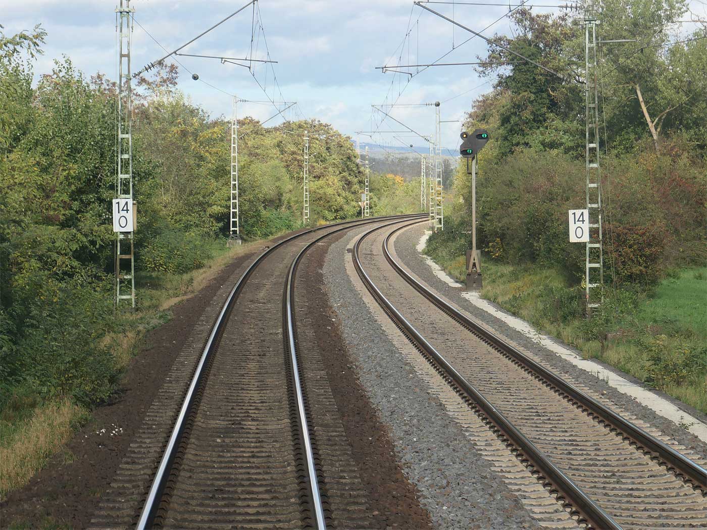 km 1,4 (links) gehört zur Strecke Mainz Hbf 0,0 - Wiesbaden Hbf 9,74 (linkes Gleis)
