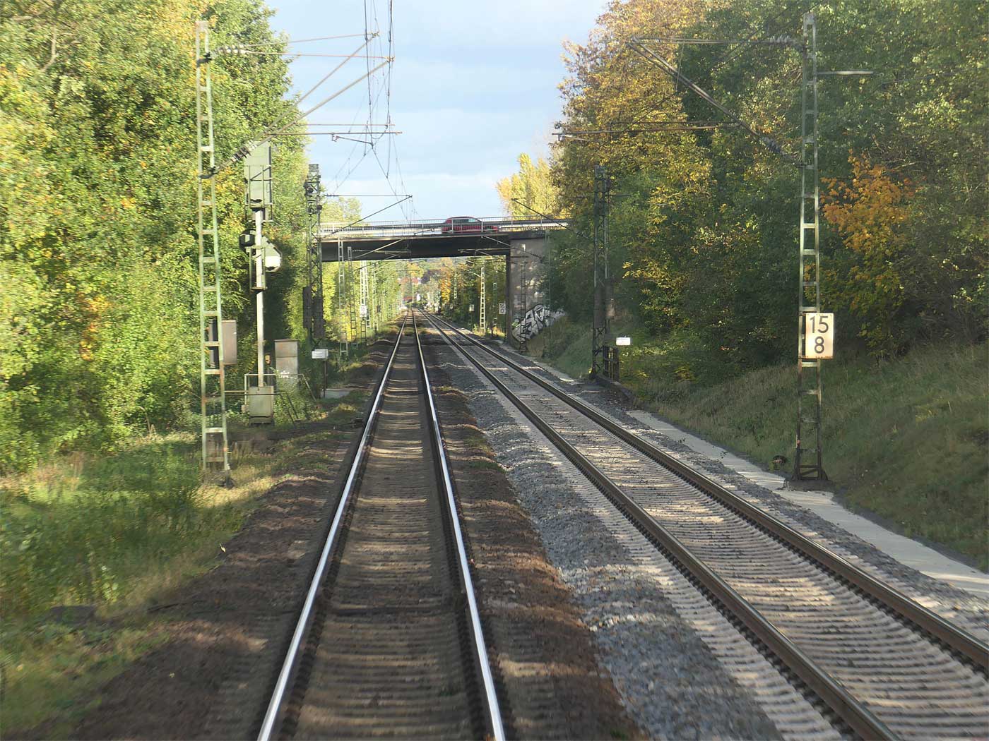 Kilometerwechsel auf der Nahebrücke - Blick Richtung Köln
