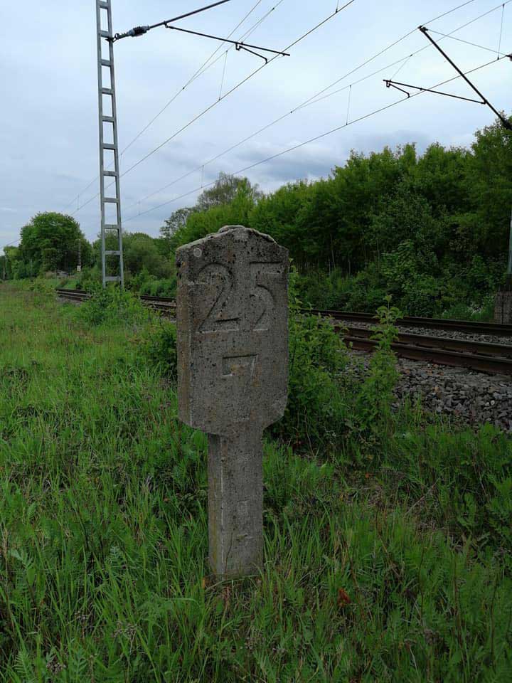 Durch den Oberleitungsmast ist noch km 2,4 zu erkennen.