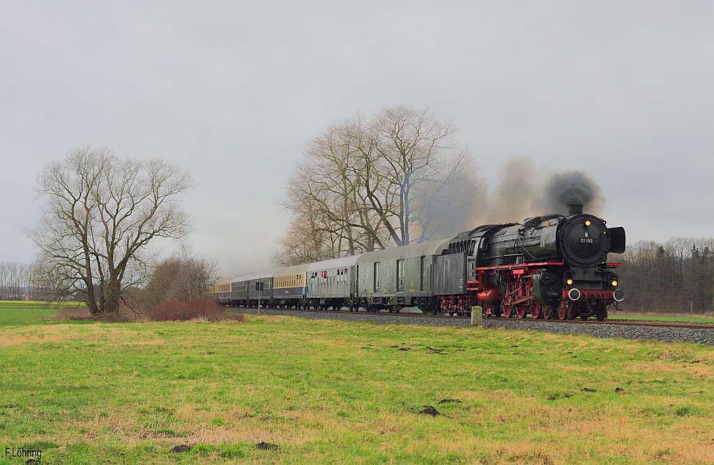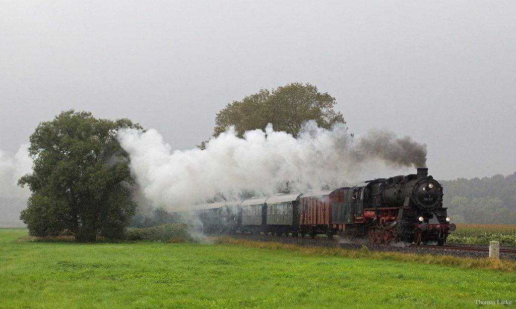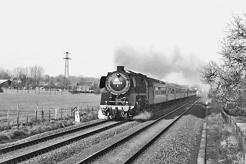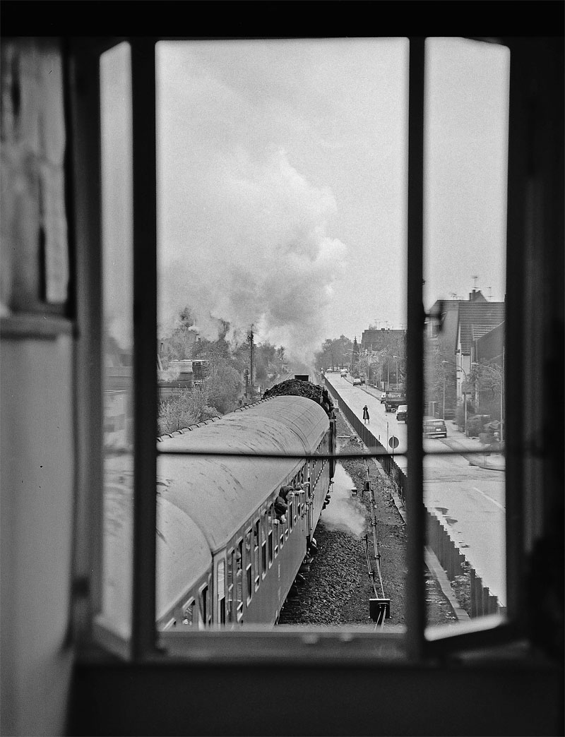 beigefarbenem Zierstreifen mit dem heftig staubenden Zug nach HOESCH in Do-Hörde