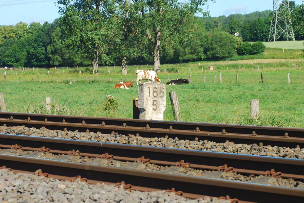 km 186,4 (Tafel) und km 186,6 (Stein und Tafel) zwischen Voßwinkel und Neheim-Hüsten - Blick Richtung Aaachen