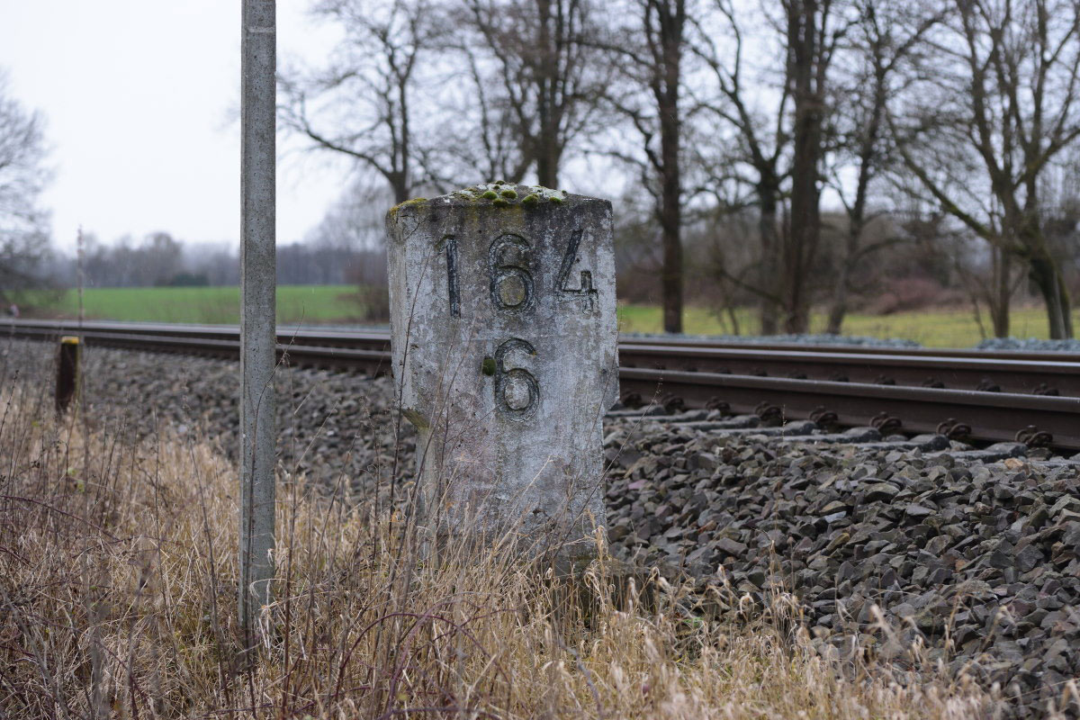 km 164,2 (Tafel) und km 164,3 (Stein) zwischen Schwerte (Ruhr) und Fröndenberg