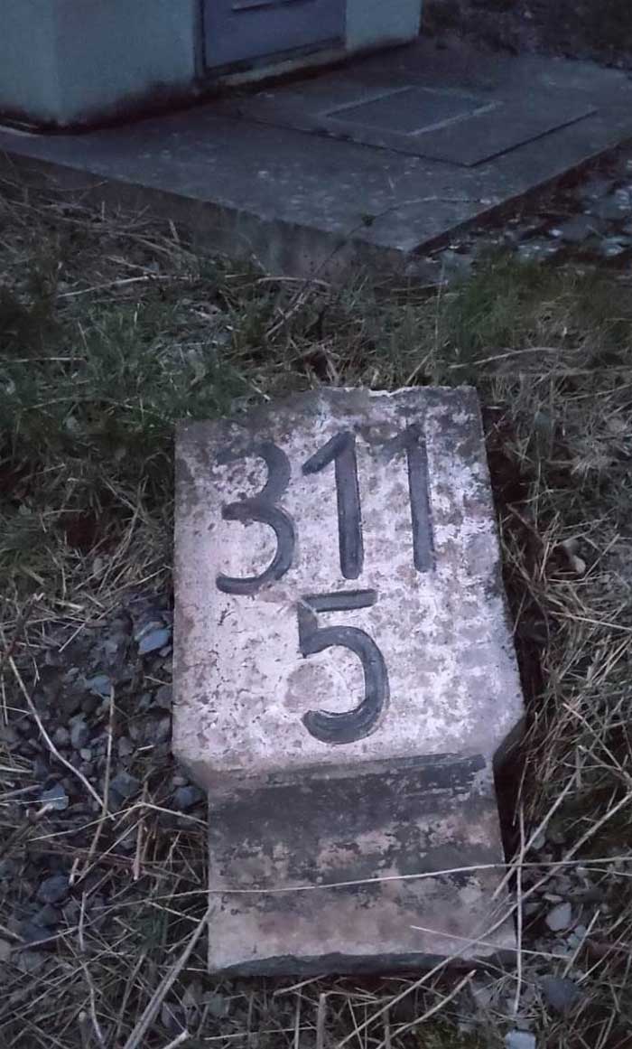 km 0,6 (Stein und Tafel) gehört zur Strecke