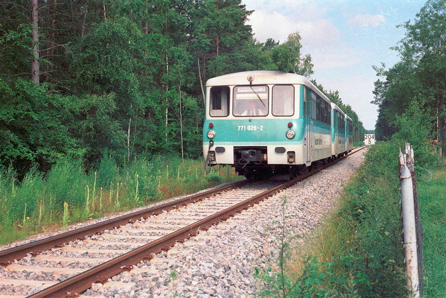 | Zwischen Ducherow und Grenze DDR/Polen wegen der zerstörten Peenebrücke kein Betrieb. | ||